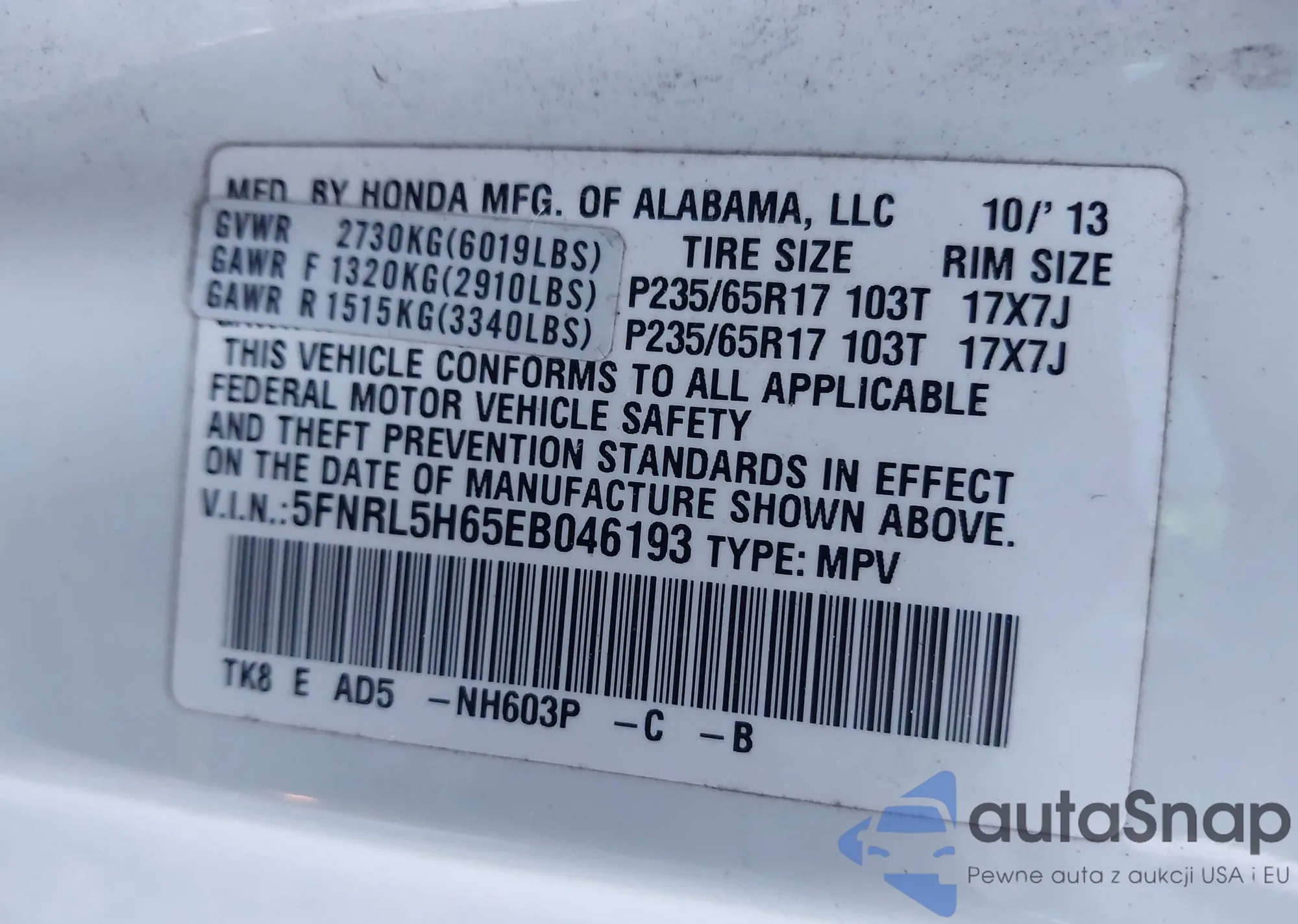 LOT: 43389829 VIN: 1HGCM66506A043295