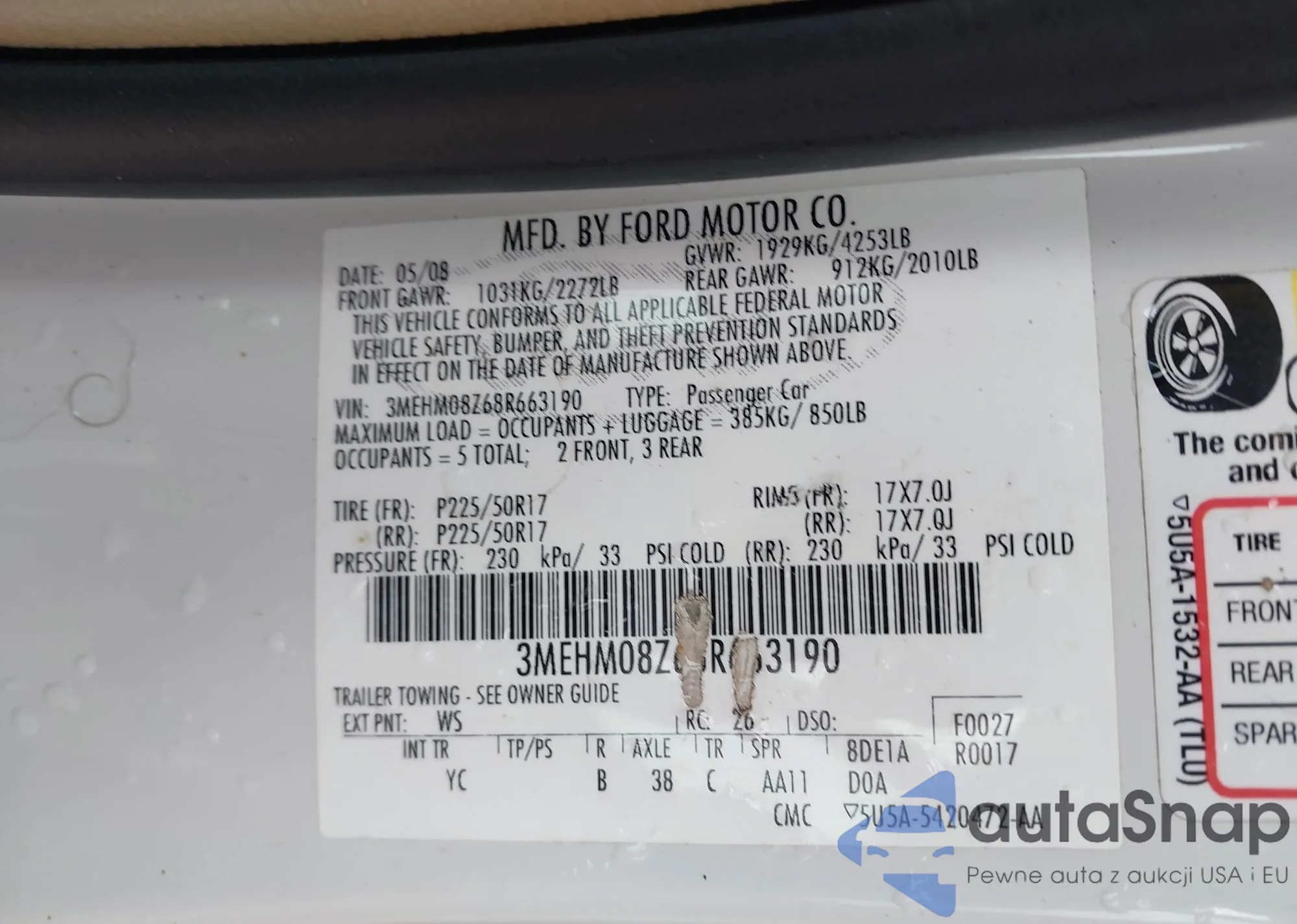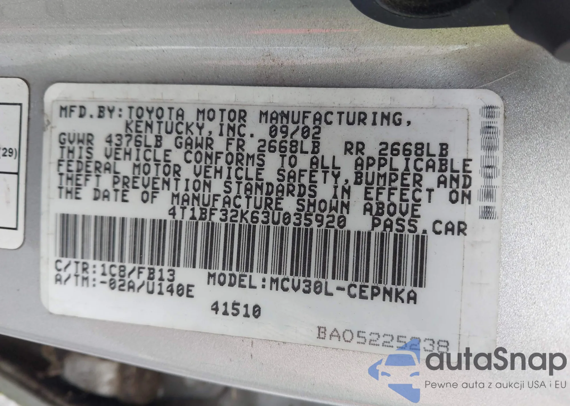 • VIN 4T1BF32K63U035920