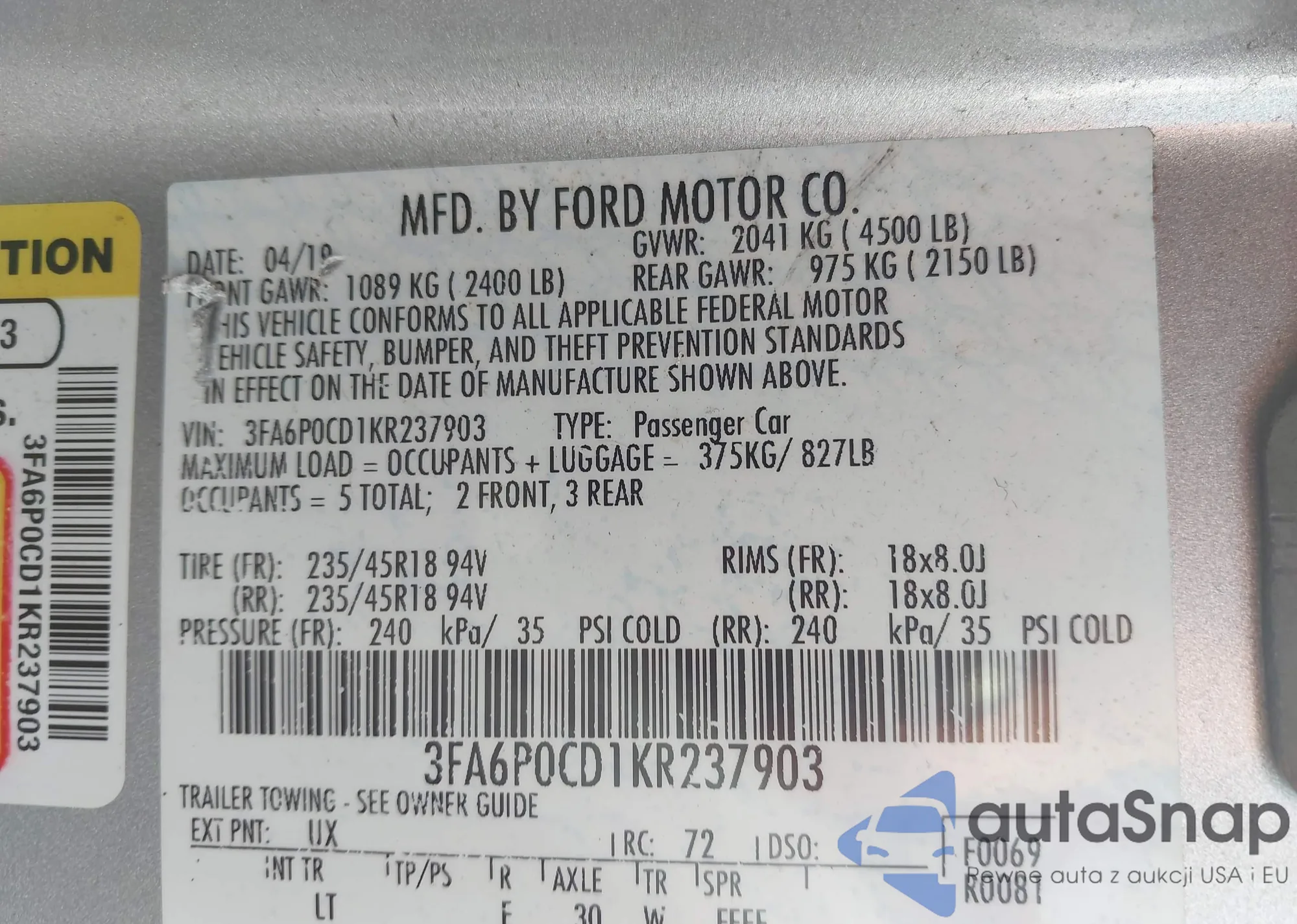 LOT: 40913265 VIN: 1FTFW1CF6DKG07206