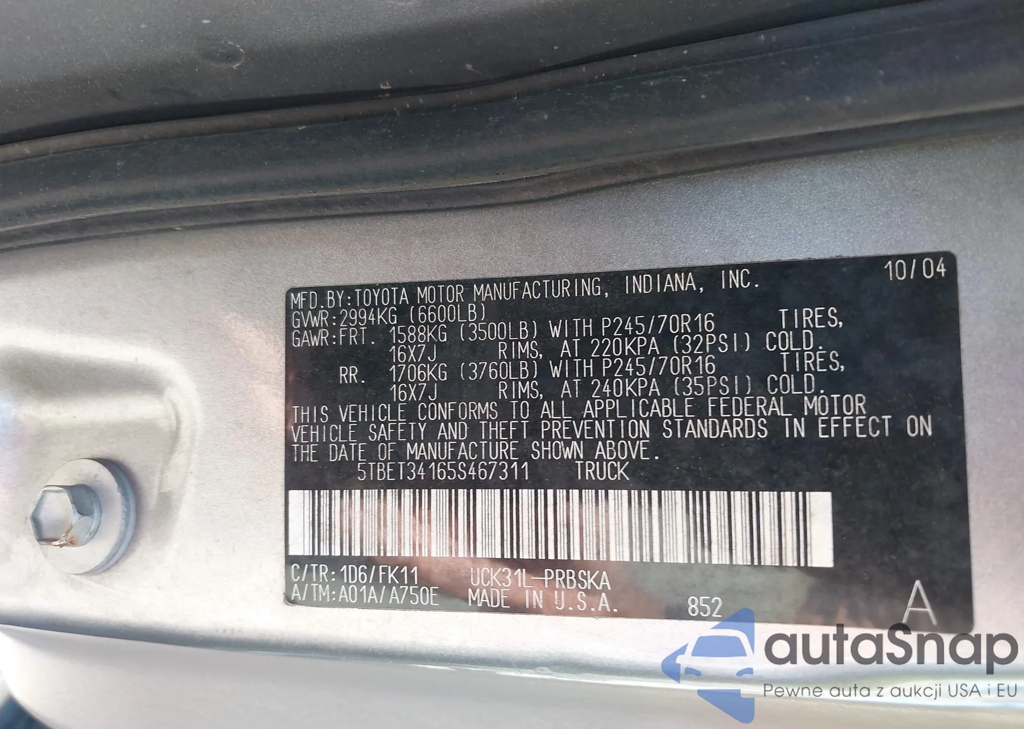 LOT: 43138128 VIN: 5TBET34165S467311