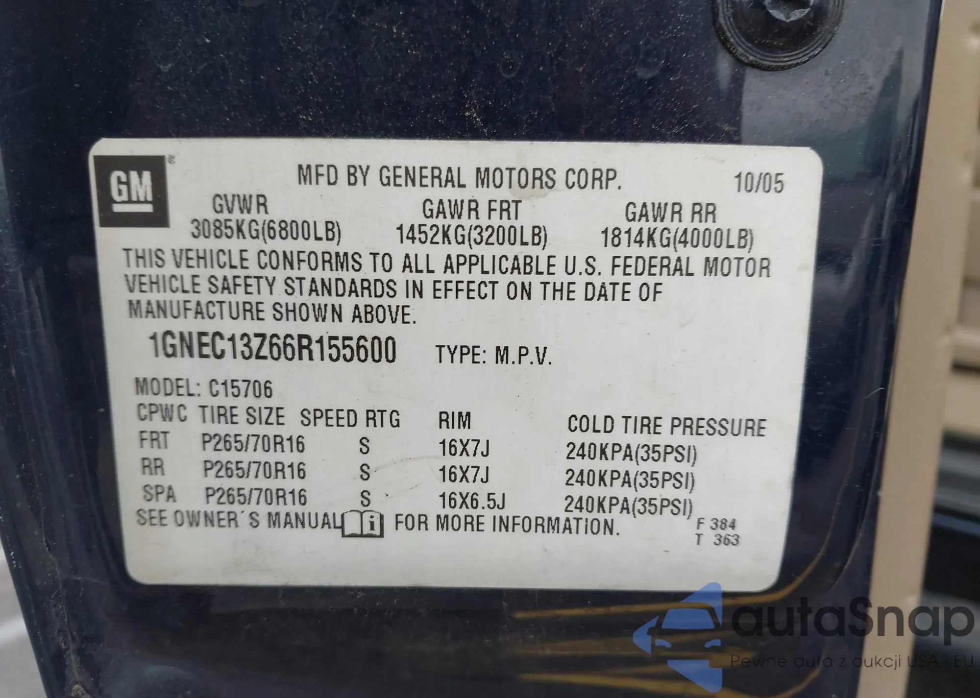 LOT: 43559245 VIN: 1GNEC13Z66R155600