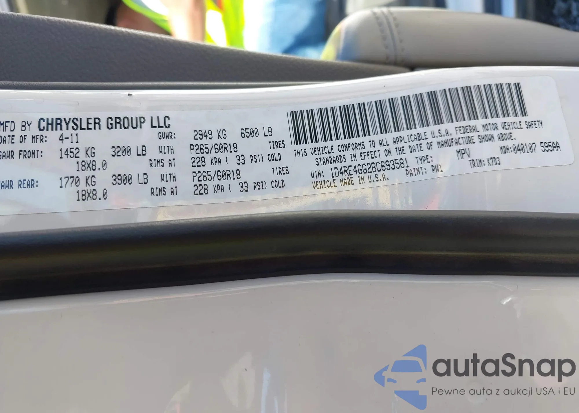LOT: 43361693 VIN: 1D4RE4GG2BC693581