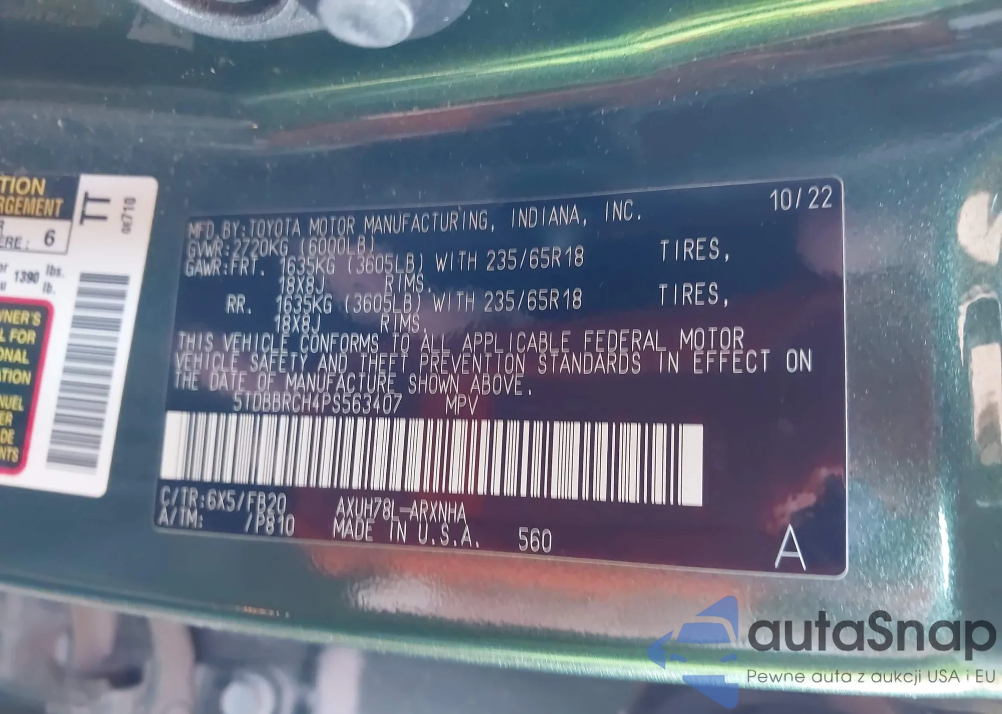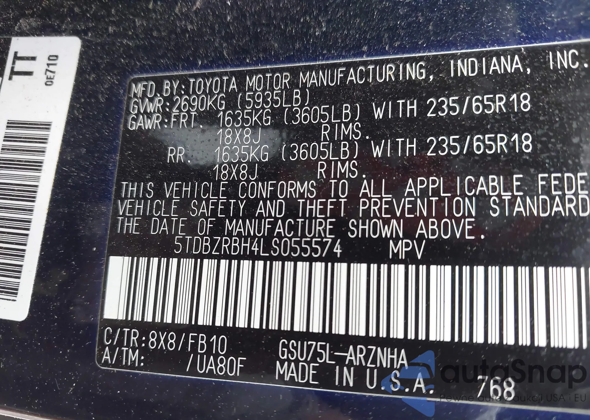 • VIN 5TDBZRBH4LS055574