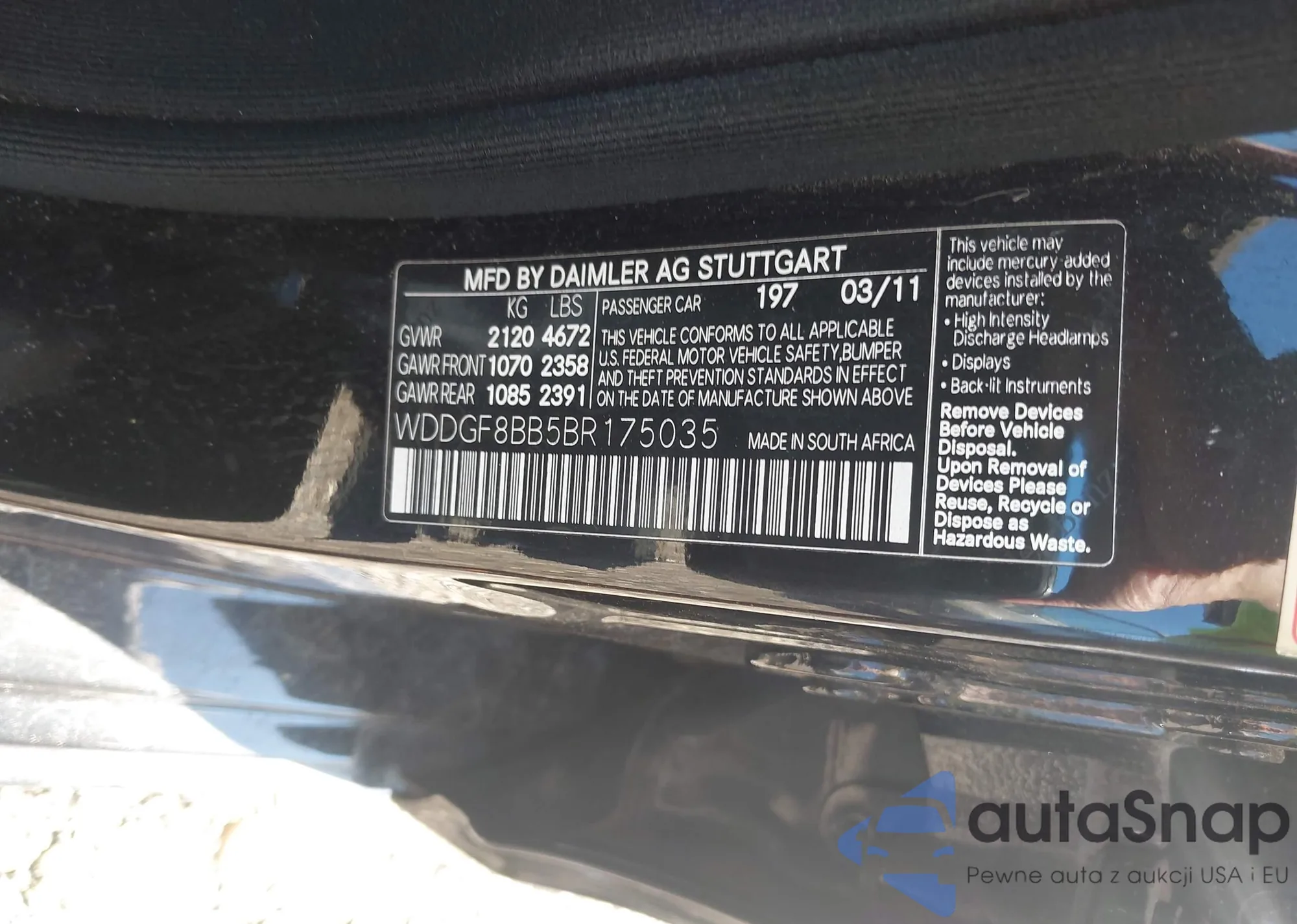 LOT: 43386541 VIN: WDDGF8BB2AR091186