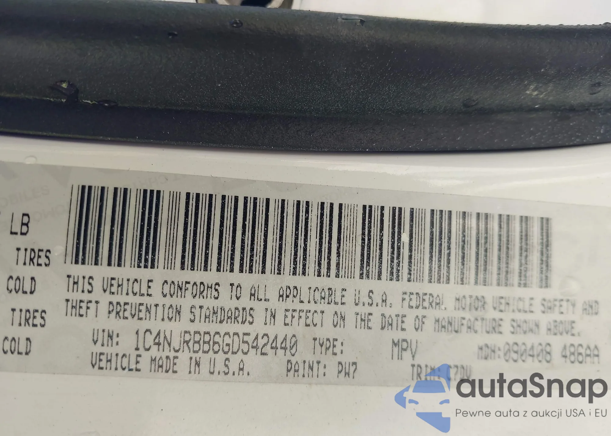 • VIN 1C4NJRBB6GD542440