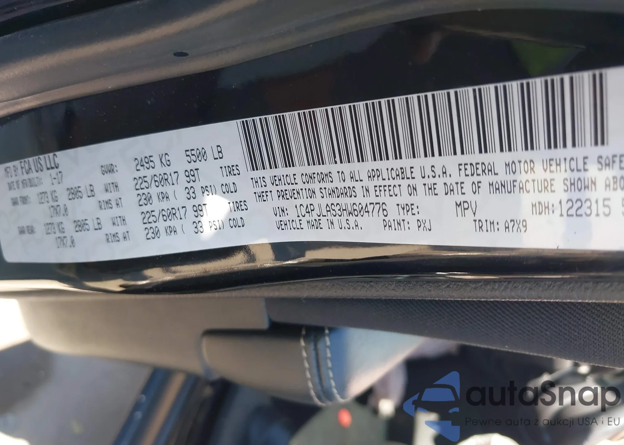 LOT: 43400793 VIN: 1C4PJLAS3HW604776