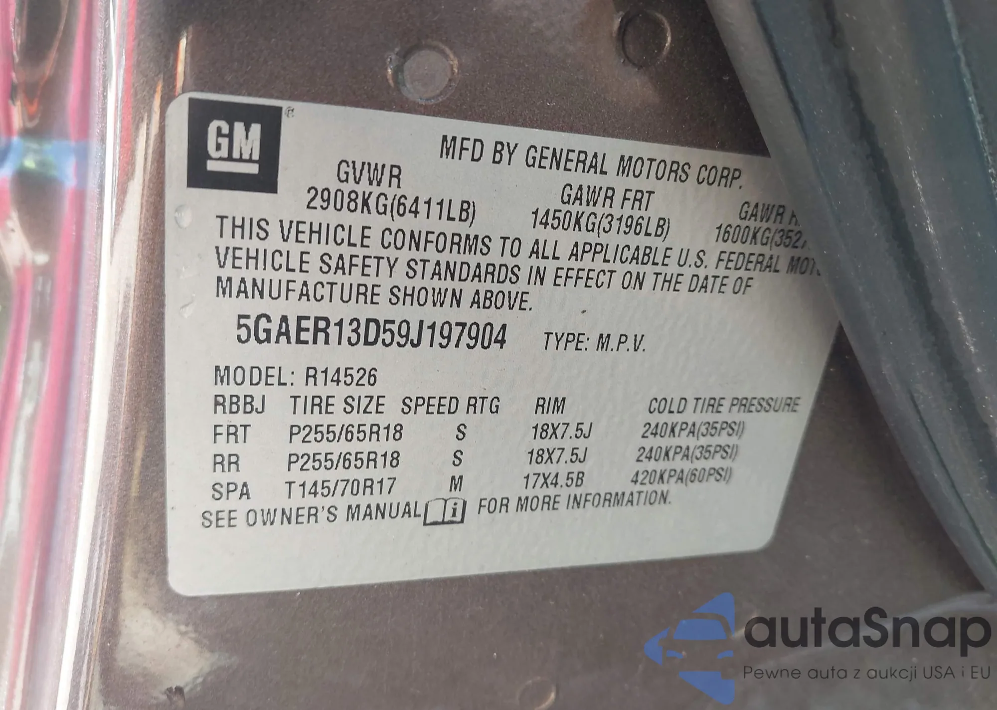 • VIN 5GAER13D59J197904