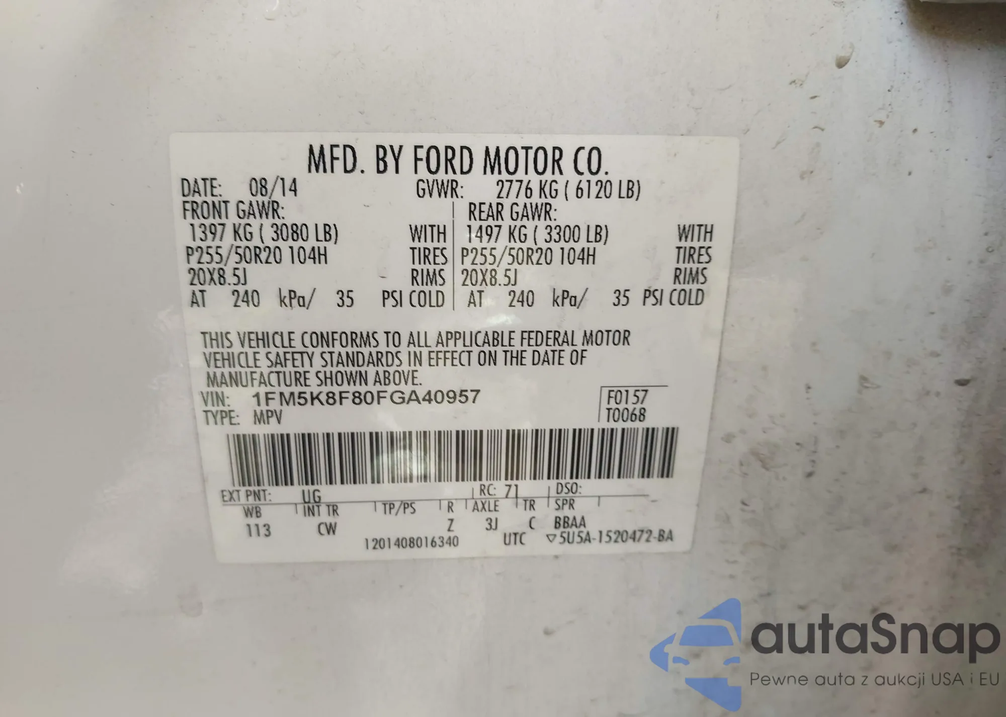 LOT: 43519189 VIN: KNAFX4A60F5352388