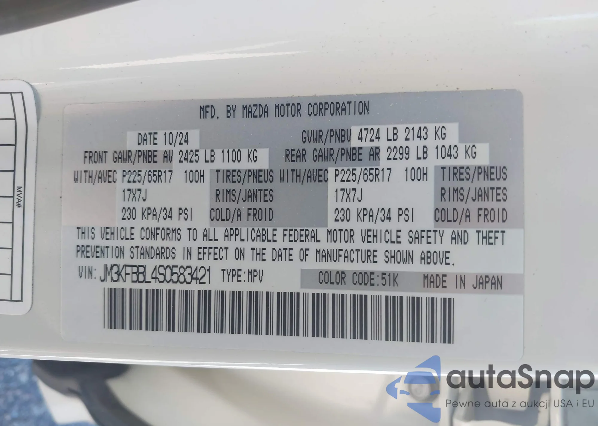 LOT: 43588677 VIN: JM3KFBBL4S0583421