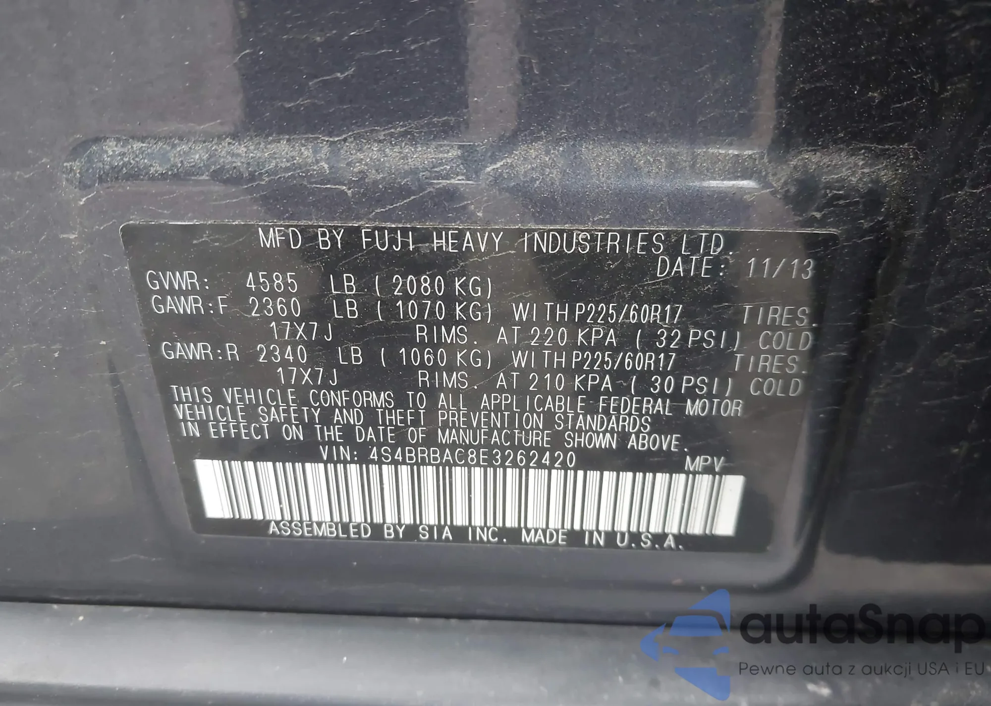 2014 Subaru Outback 2.5I из США, поврежденный, VIN 4S4BRBAC8E3262420