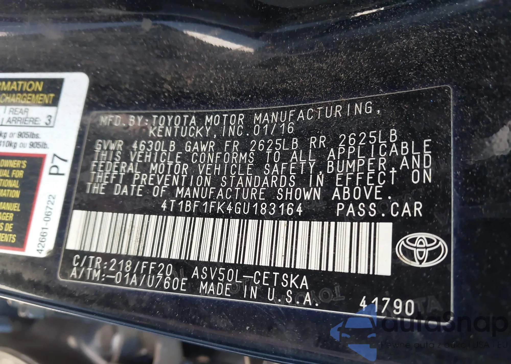 • VIN 4T1BF1FK4GU183164