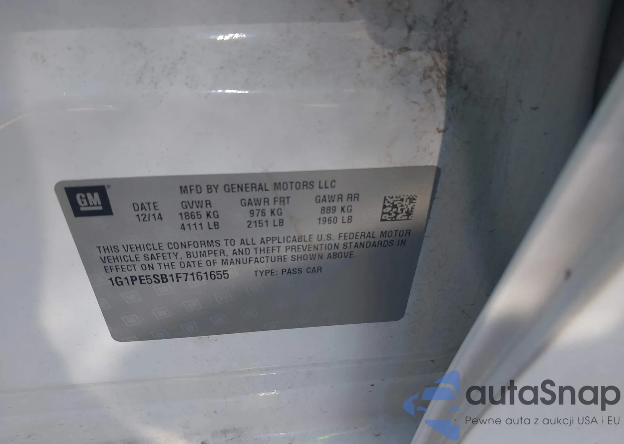 LOT: 43367093 VIN: 1G1PE5SB1F7161655