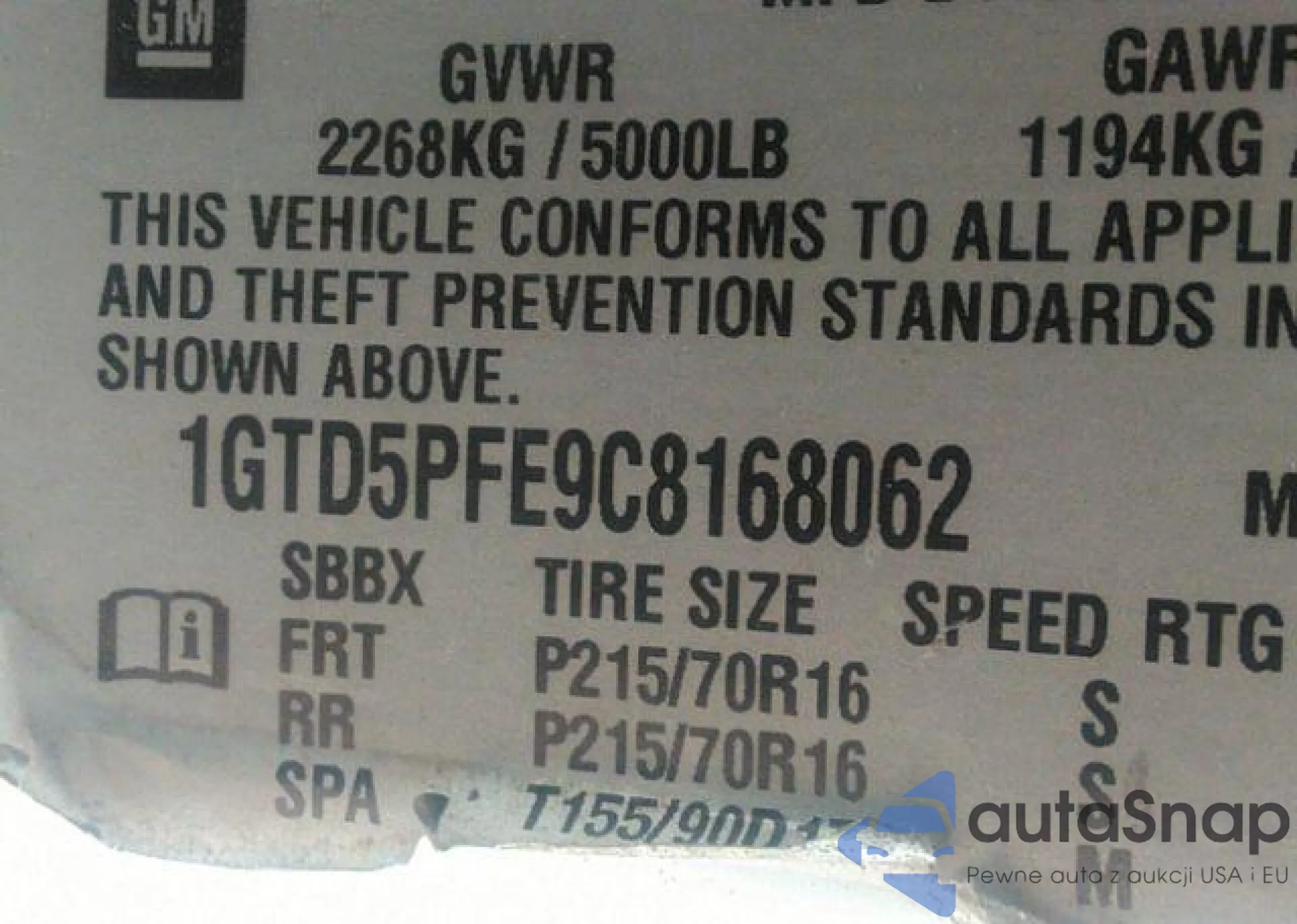 • VIN 1GTD5PFE9C8168062