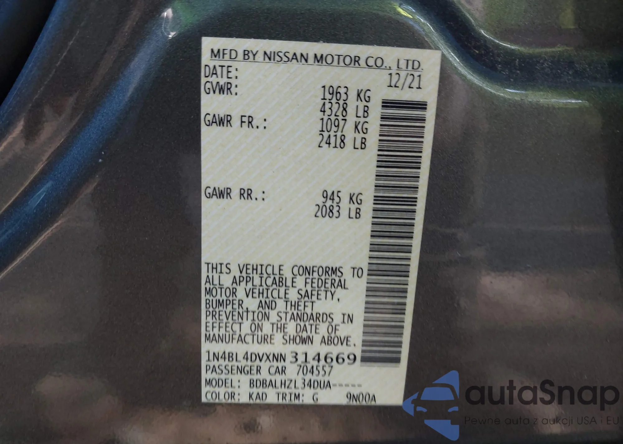 • VIN 1N4BL4DVXNN314669