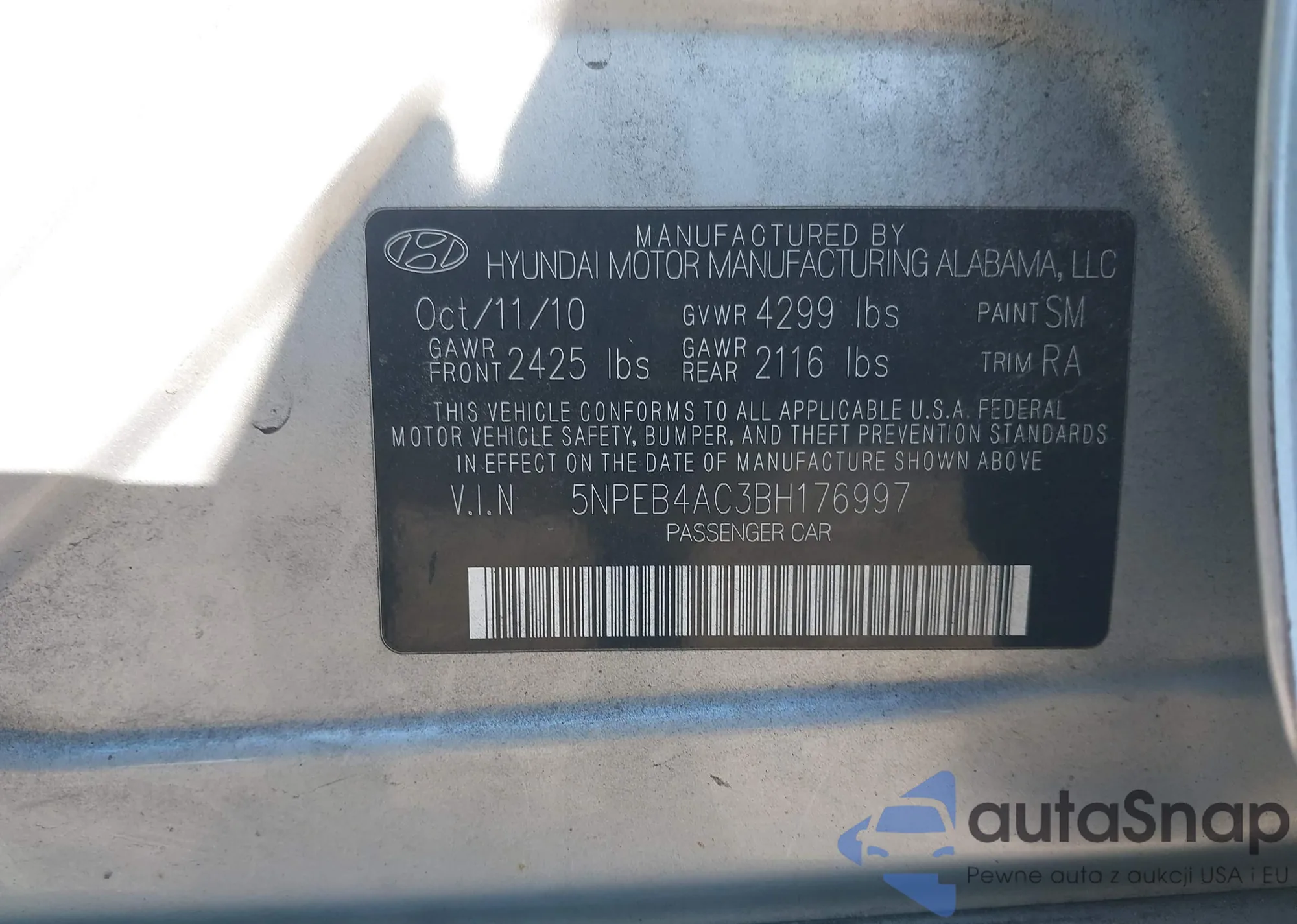 • VIN 5NPEB4AC3BH176997