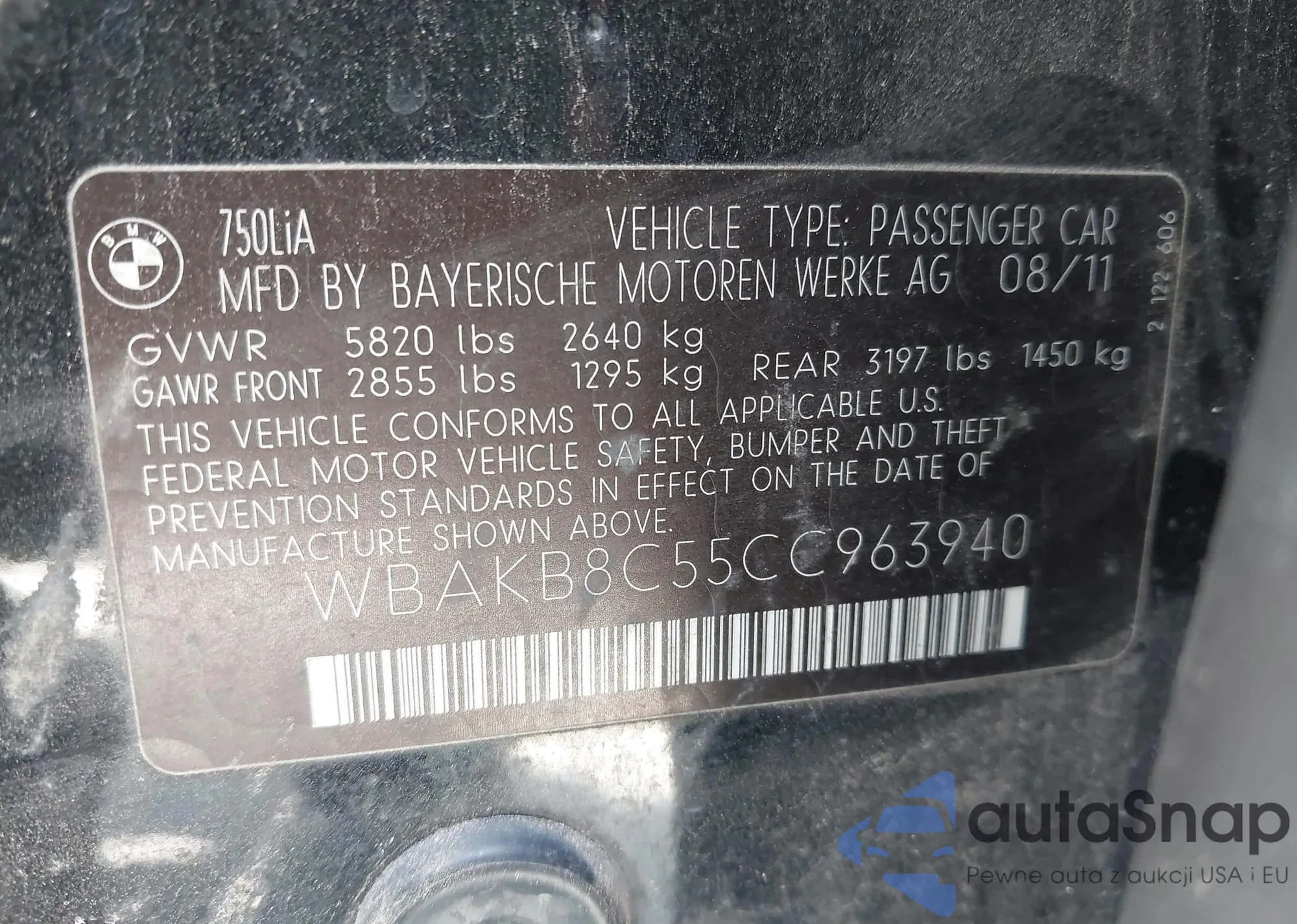 • VIN 1HGCP2F84BA116477