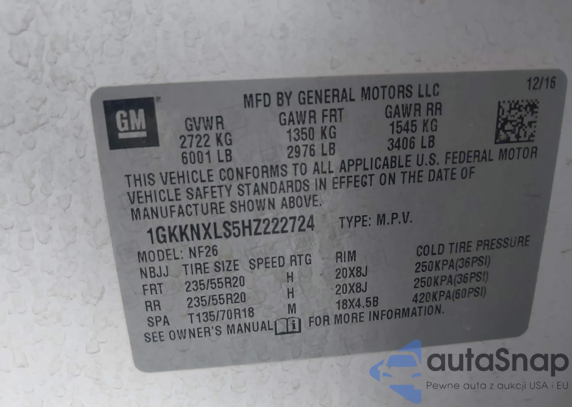 • VIN 1GKKNXLS5HZ222724