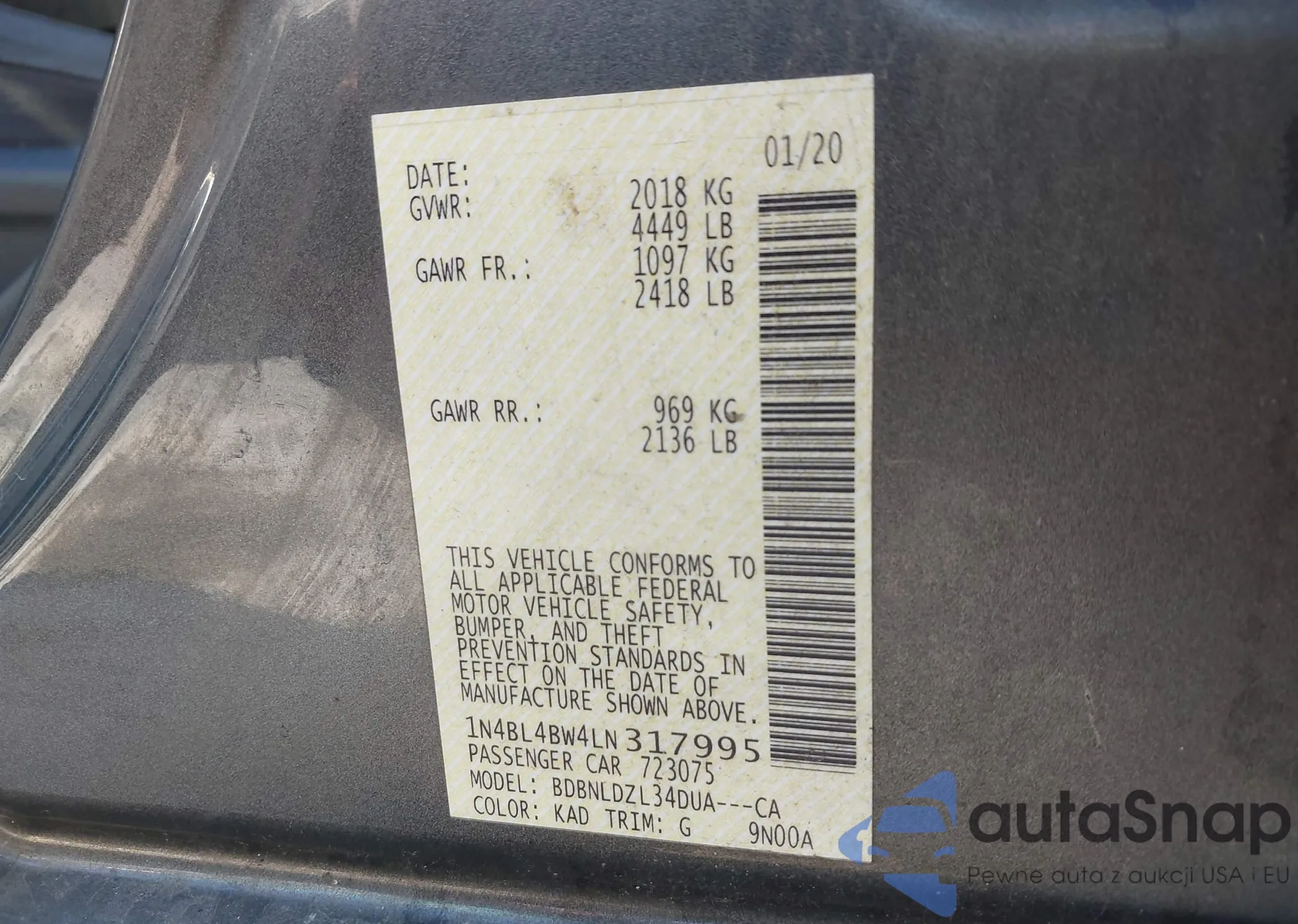 LOT: 43202039 VIN: WA1LXBF72RD007394
