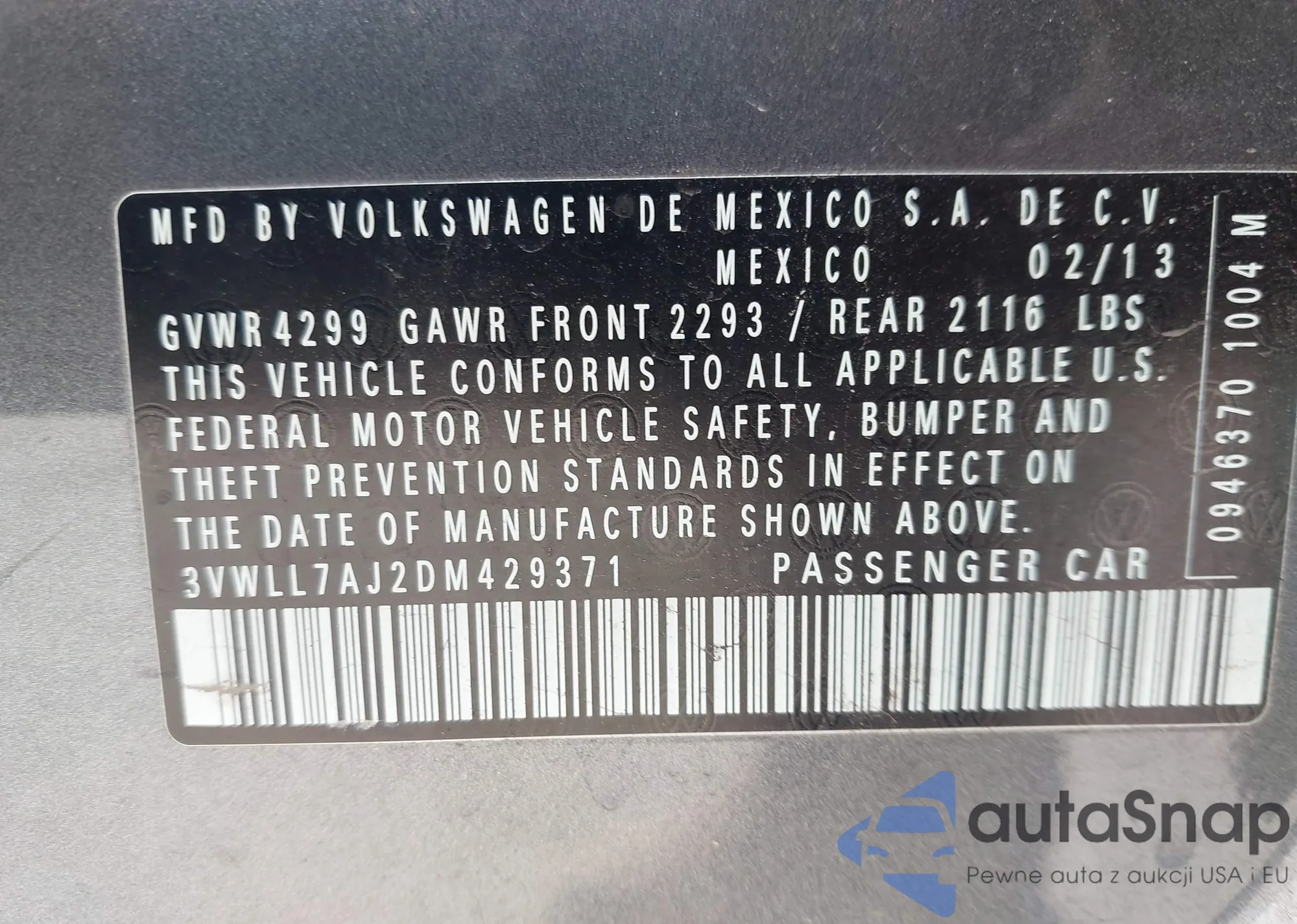 • VIN WA1LXBF72RD007394