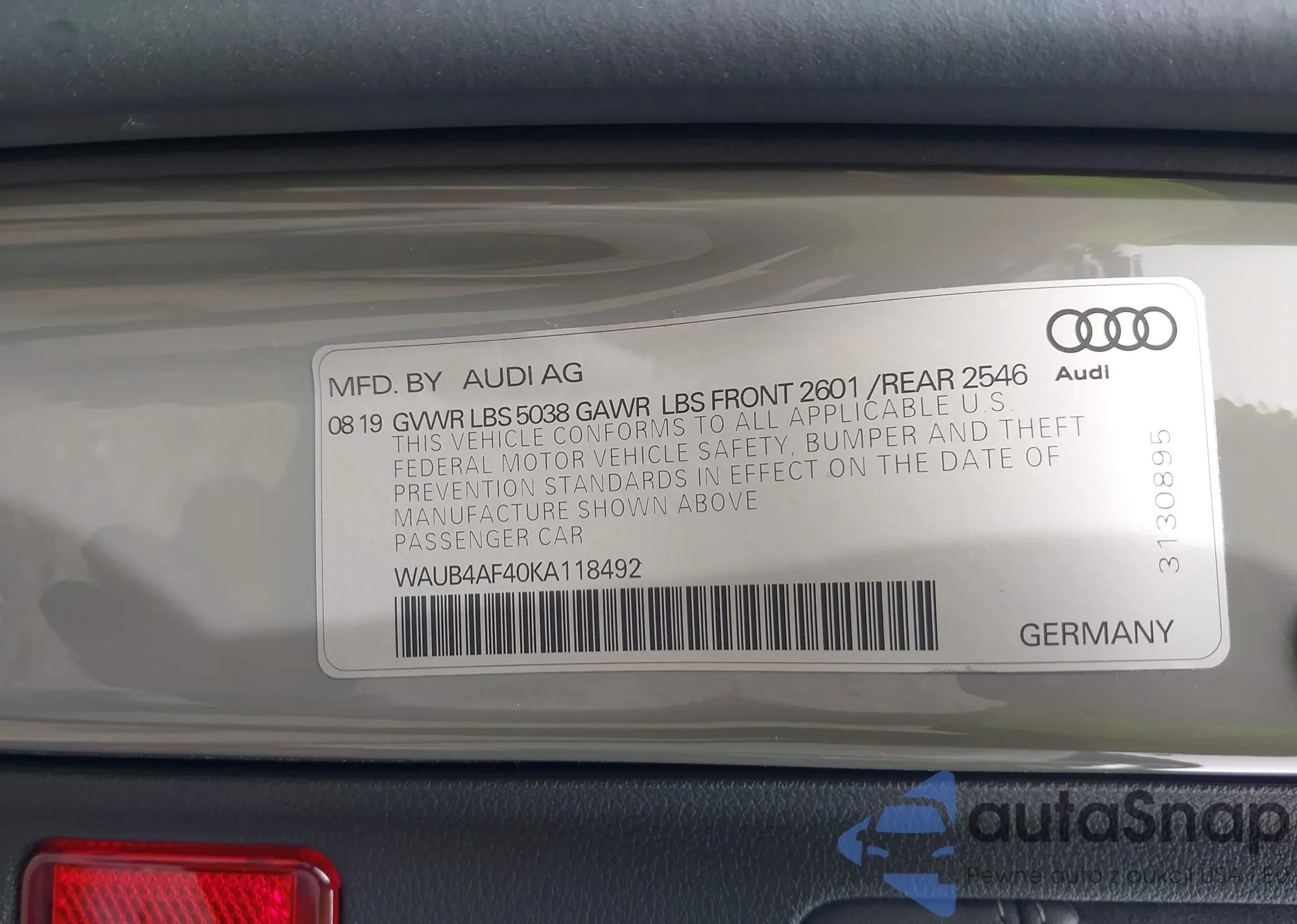 • VIN WAUB4AF40KA118492