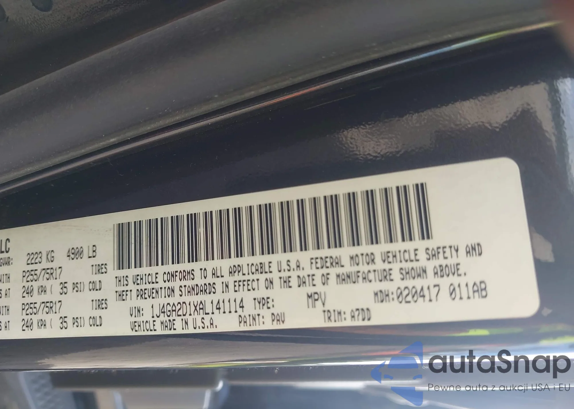 LOT: 43338871 VIN: 1J4GA2D1XAL141114