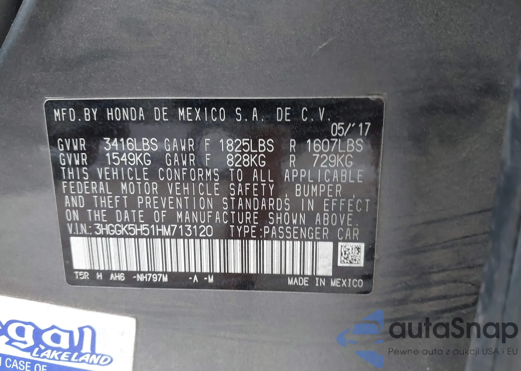 • VIN 3HGGK5H51HM713120