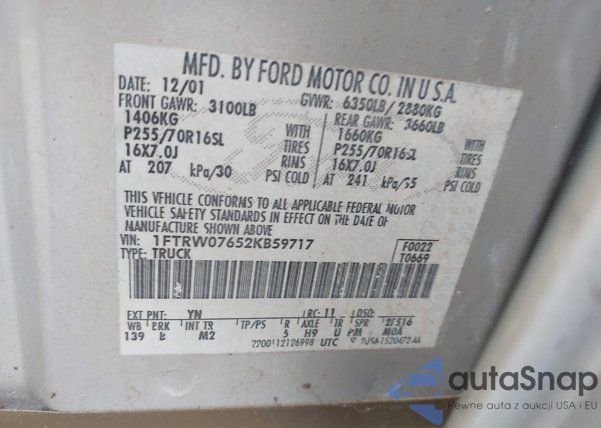 • VIN 1FTRW07652KB59717