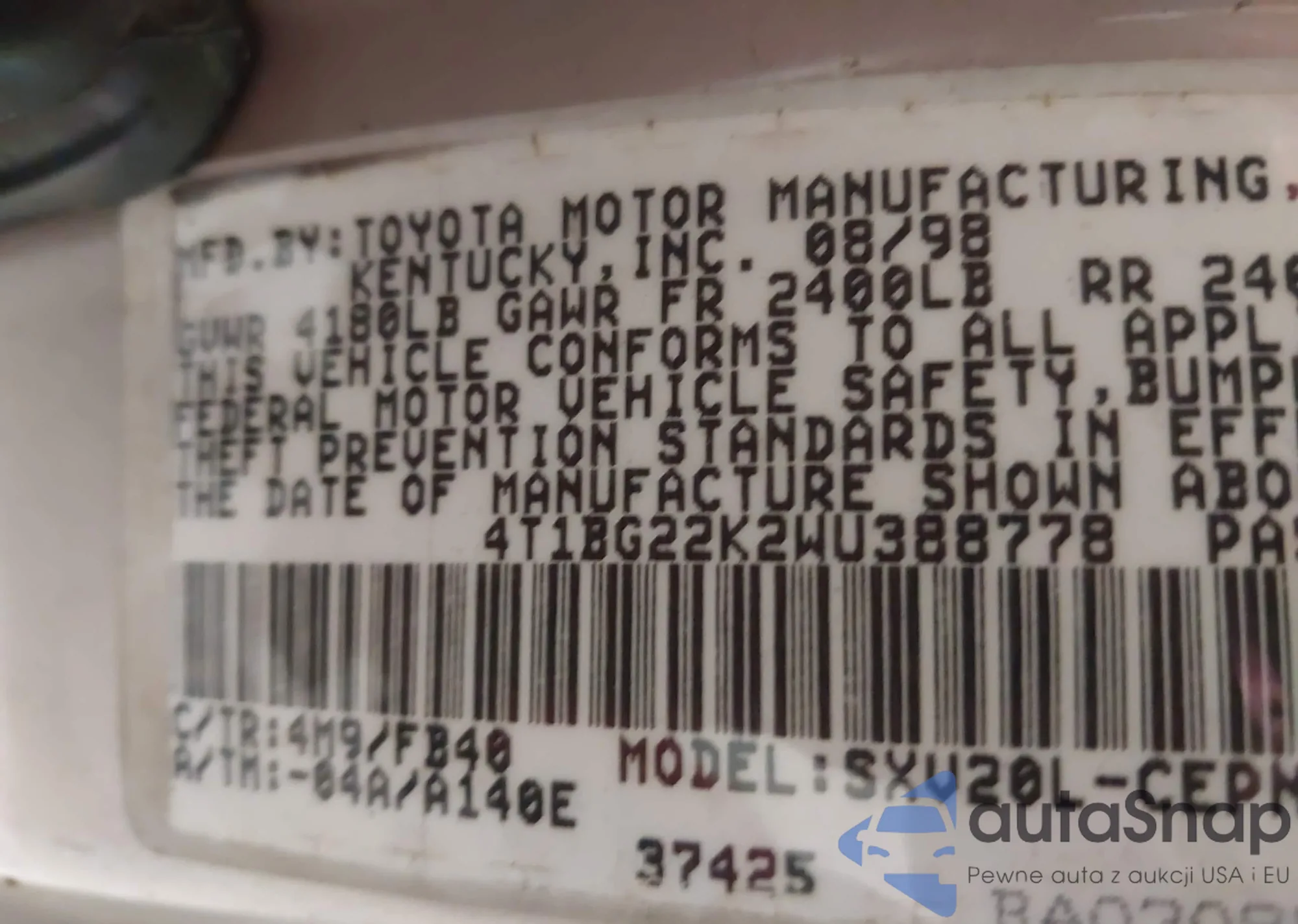 LOT: 43583848 VIN: 4T1BG22K2WU388778