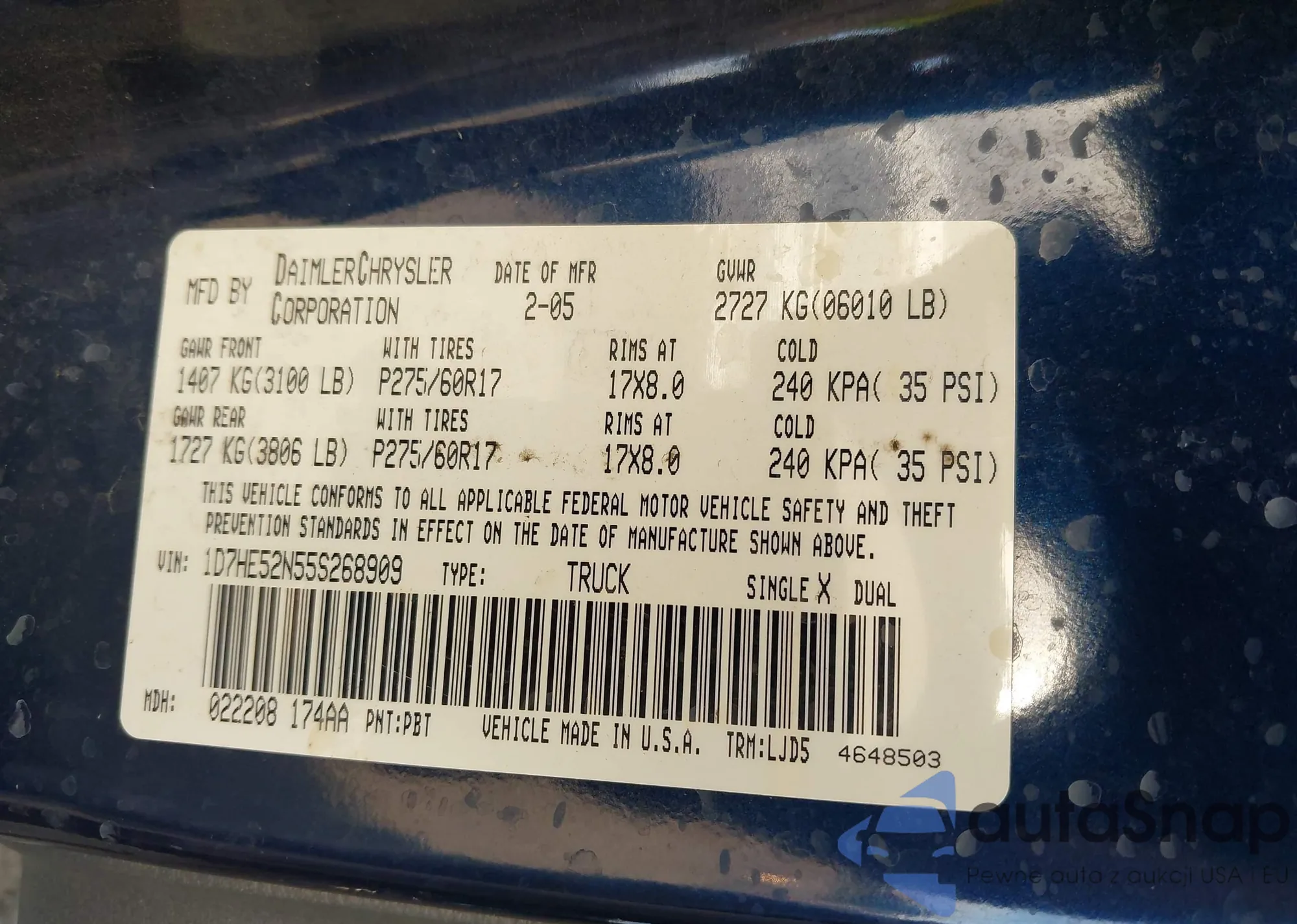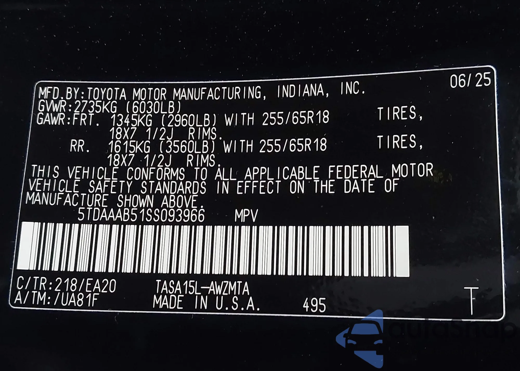 • VIN 5TDAAAB51SS093966