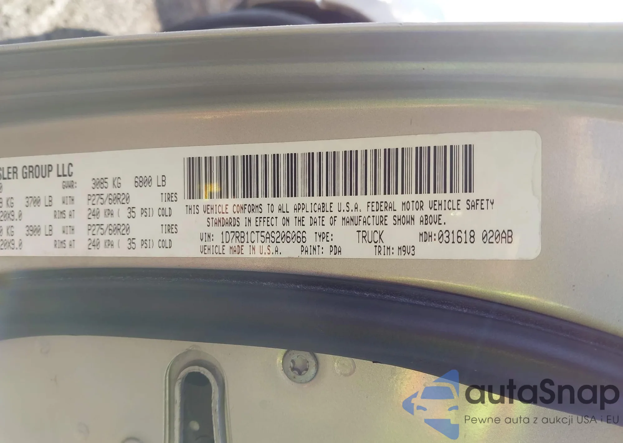 • VIN 3C6URVHG9JE139002