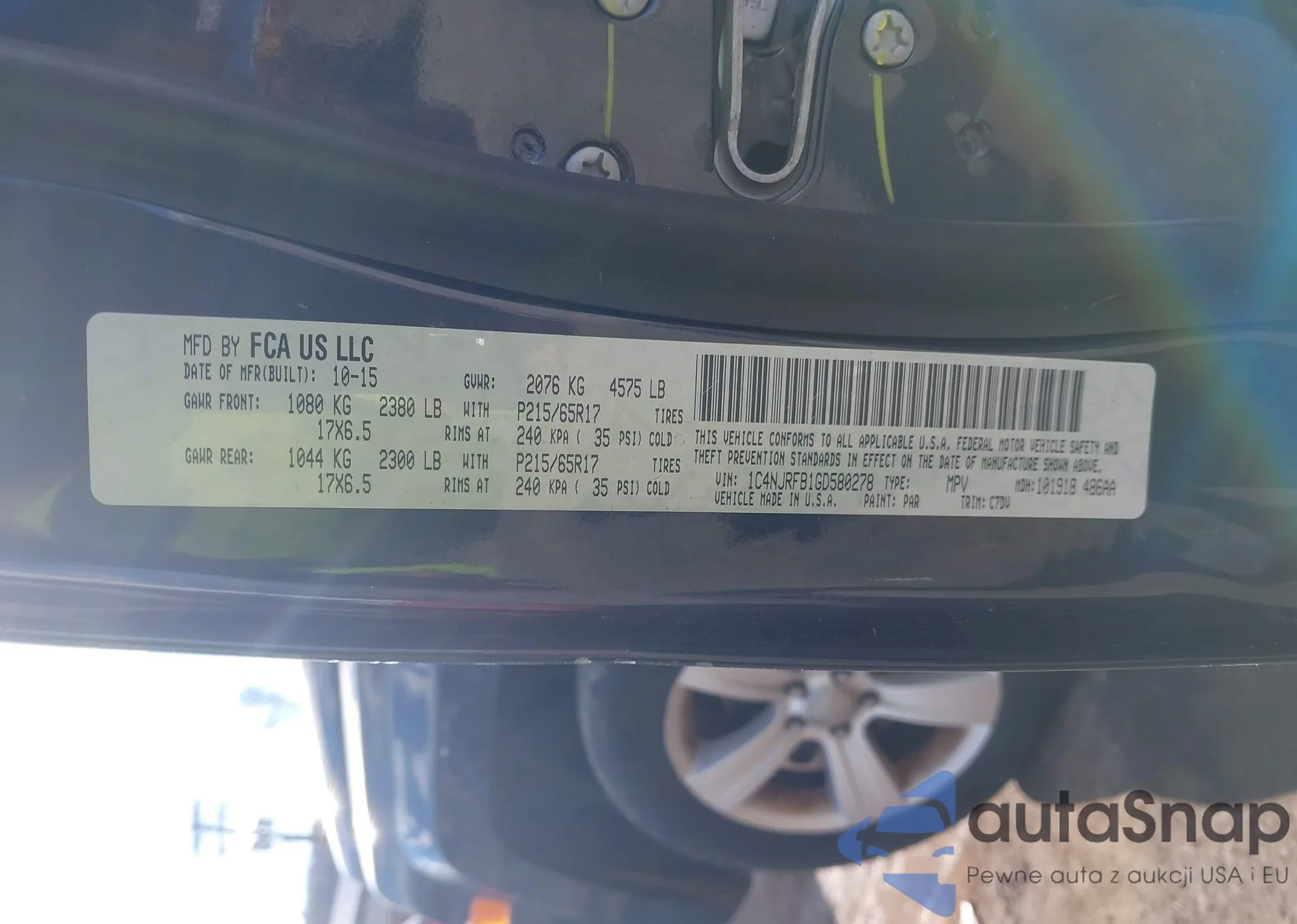 LOT: 43590800 VIN: 1C4NJRFB1GD580278