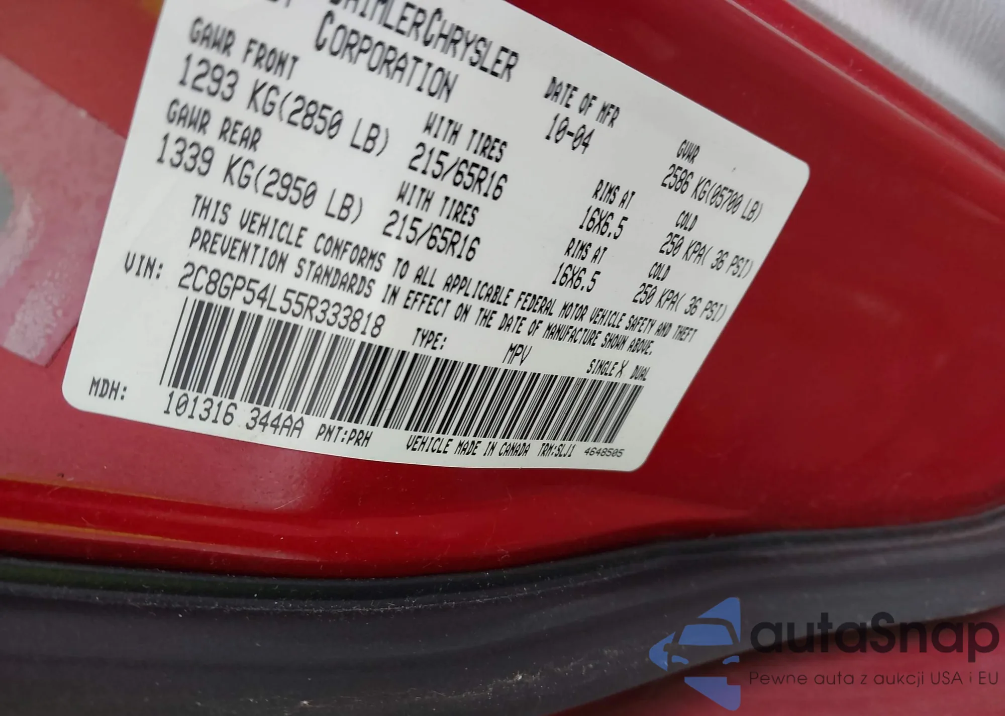 LOT: 43604413 VIN: 5TENX22N38Z588719