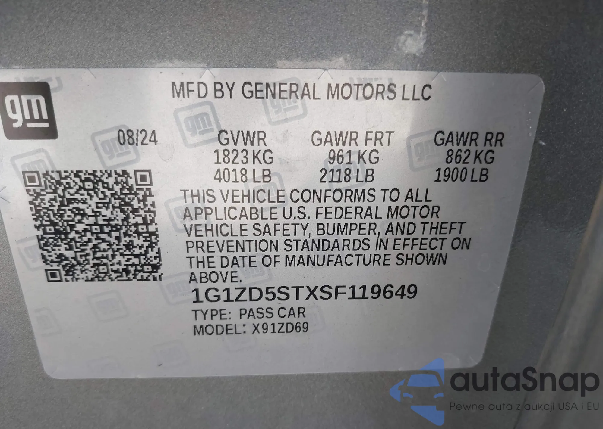 LOT: 43620427 VIN: 1G1ZD5ST5RF109735