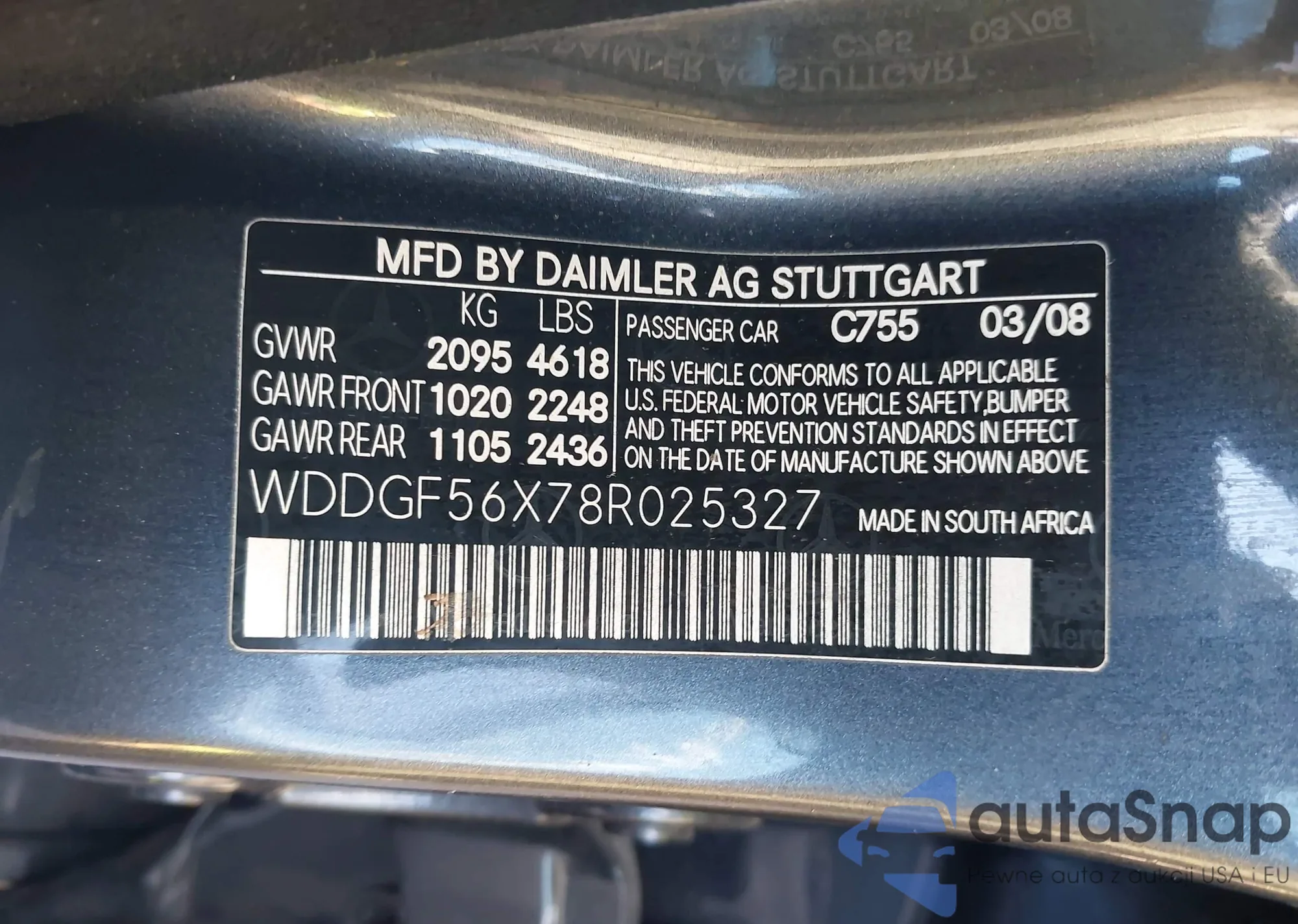 LOT: 43487353 VIN: WDDGF56X78R025327