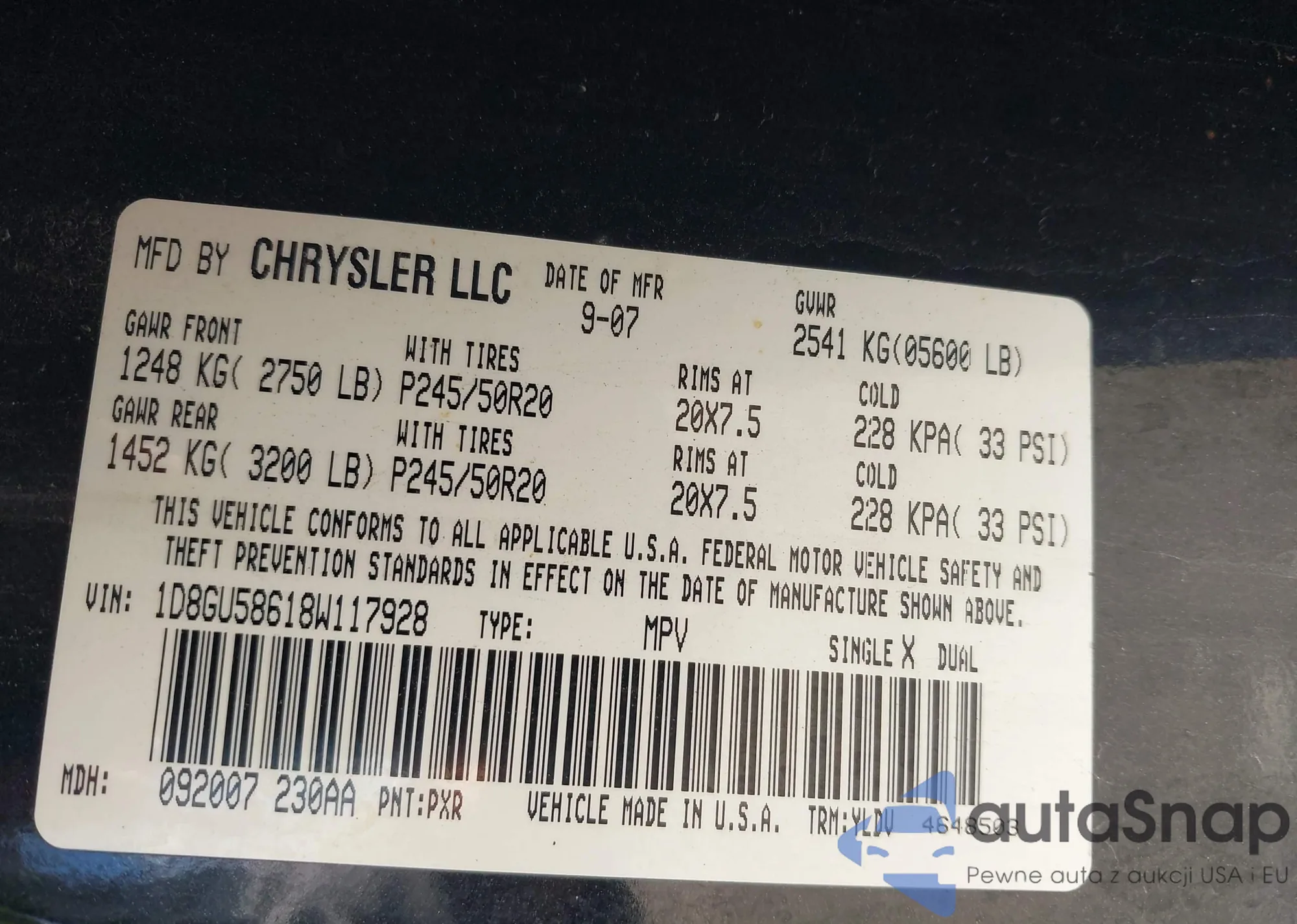 • VIN 1D8GU58618W117928