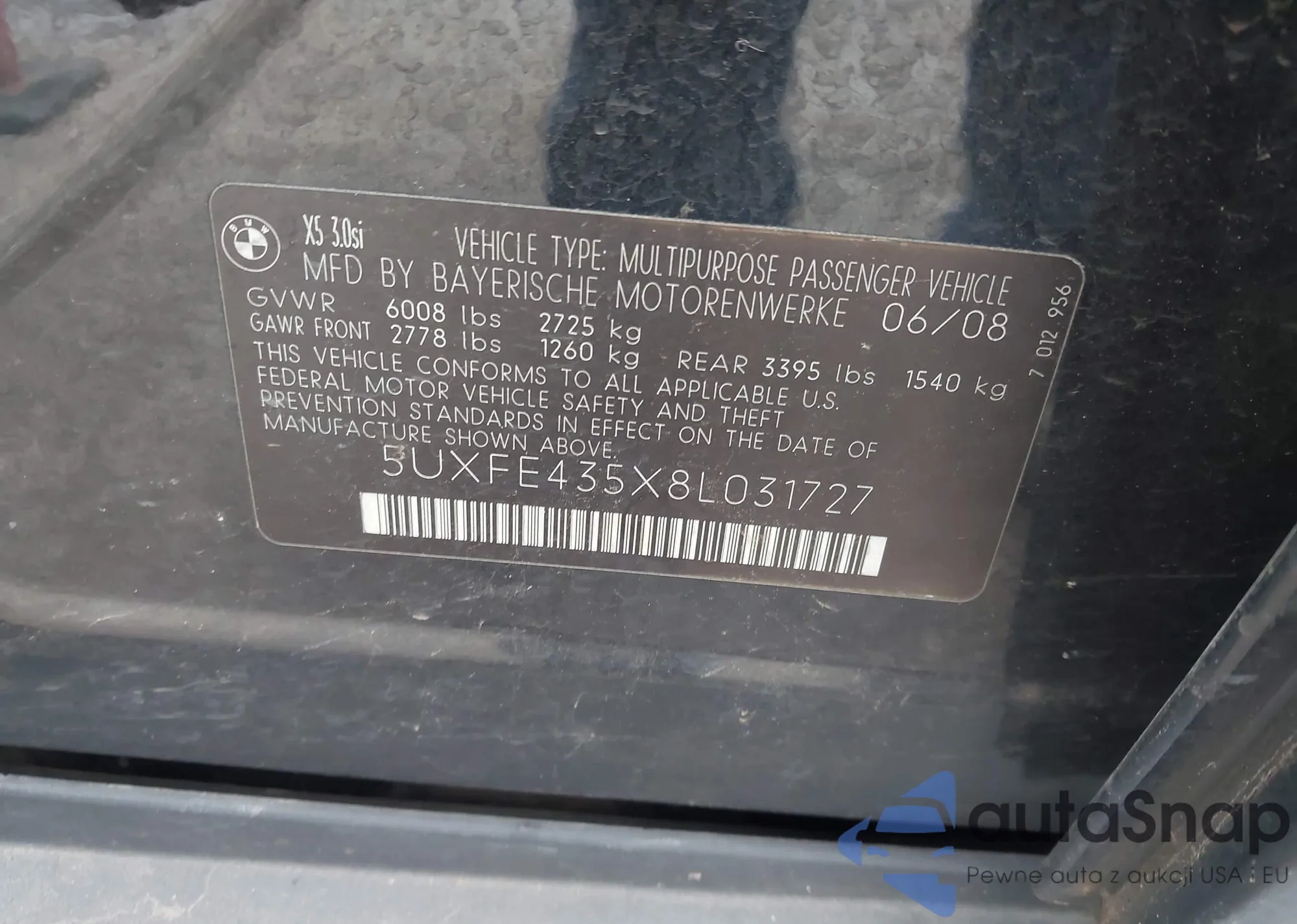 LOT: 43530339 VIN: 5UXFE435X8L031727