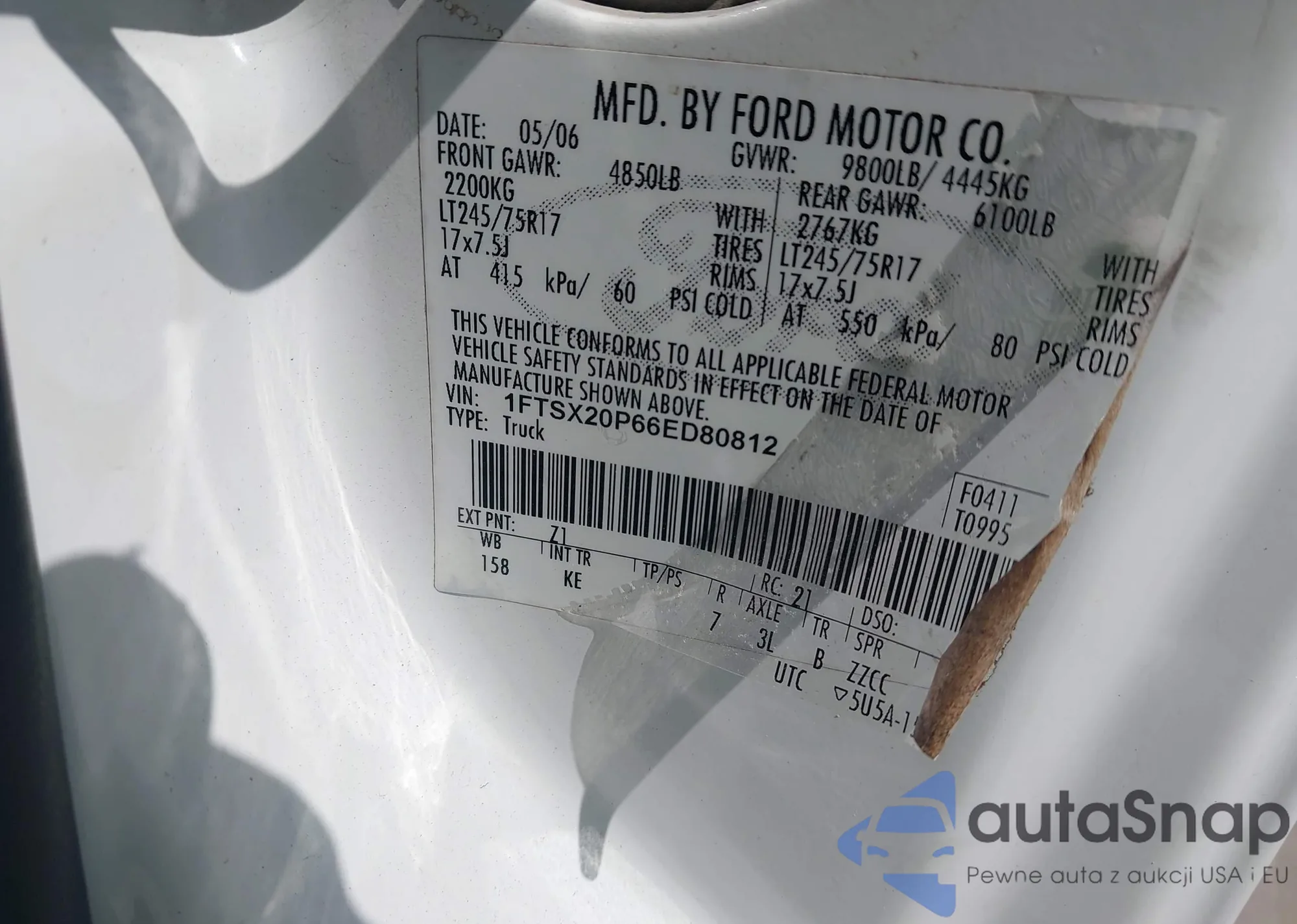 LOT: 43538002 VIN: 2HNYD18866H513310