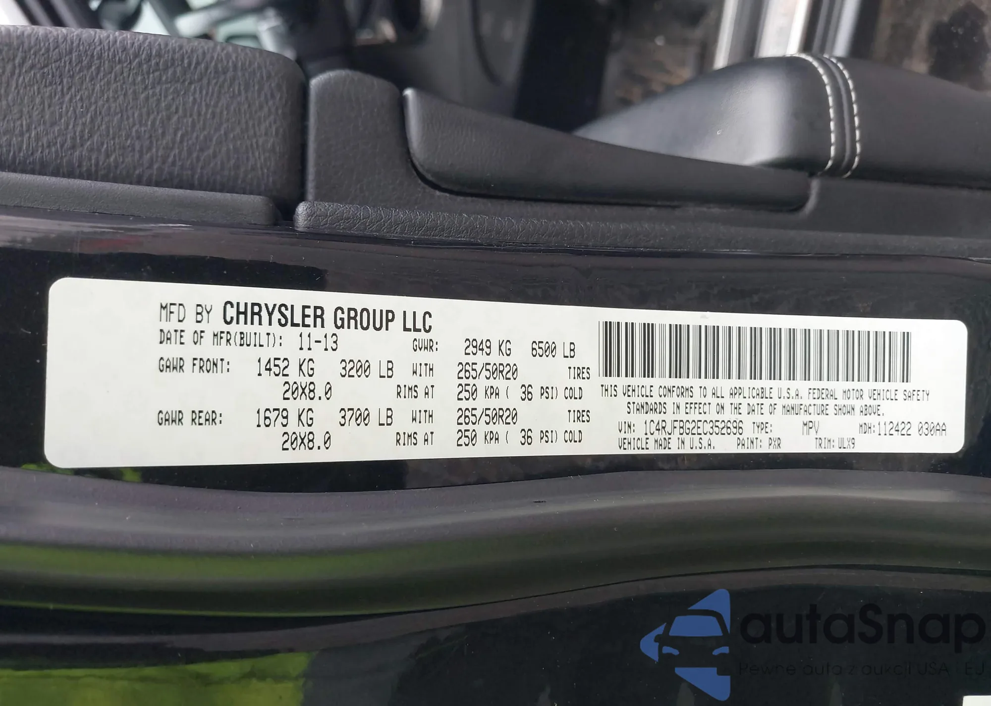 • VIN 1C4RJFBG2EC352696