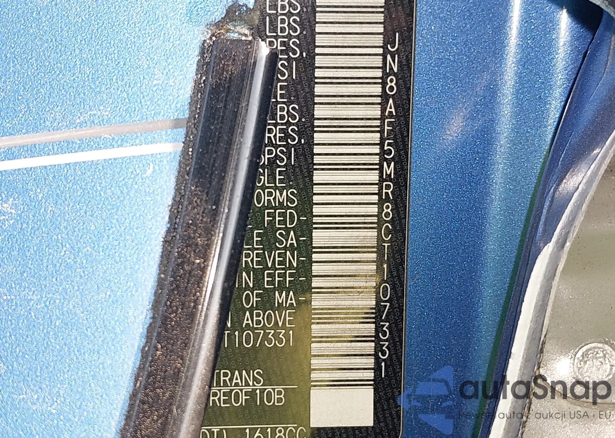 LOT: 43453027 VIN: JN8AF5MR8CT107331