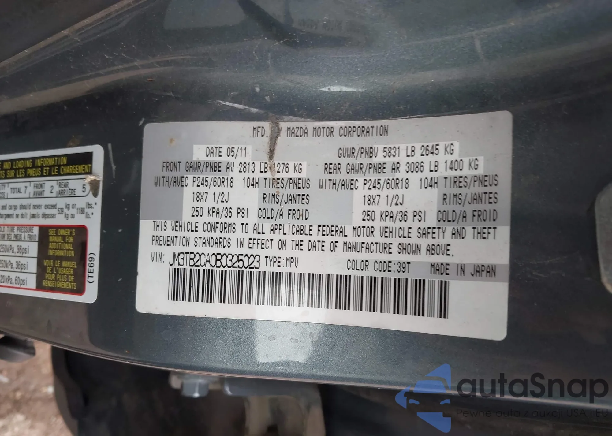 • VIN JM3TB2CA0B0325023