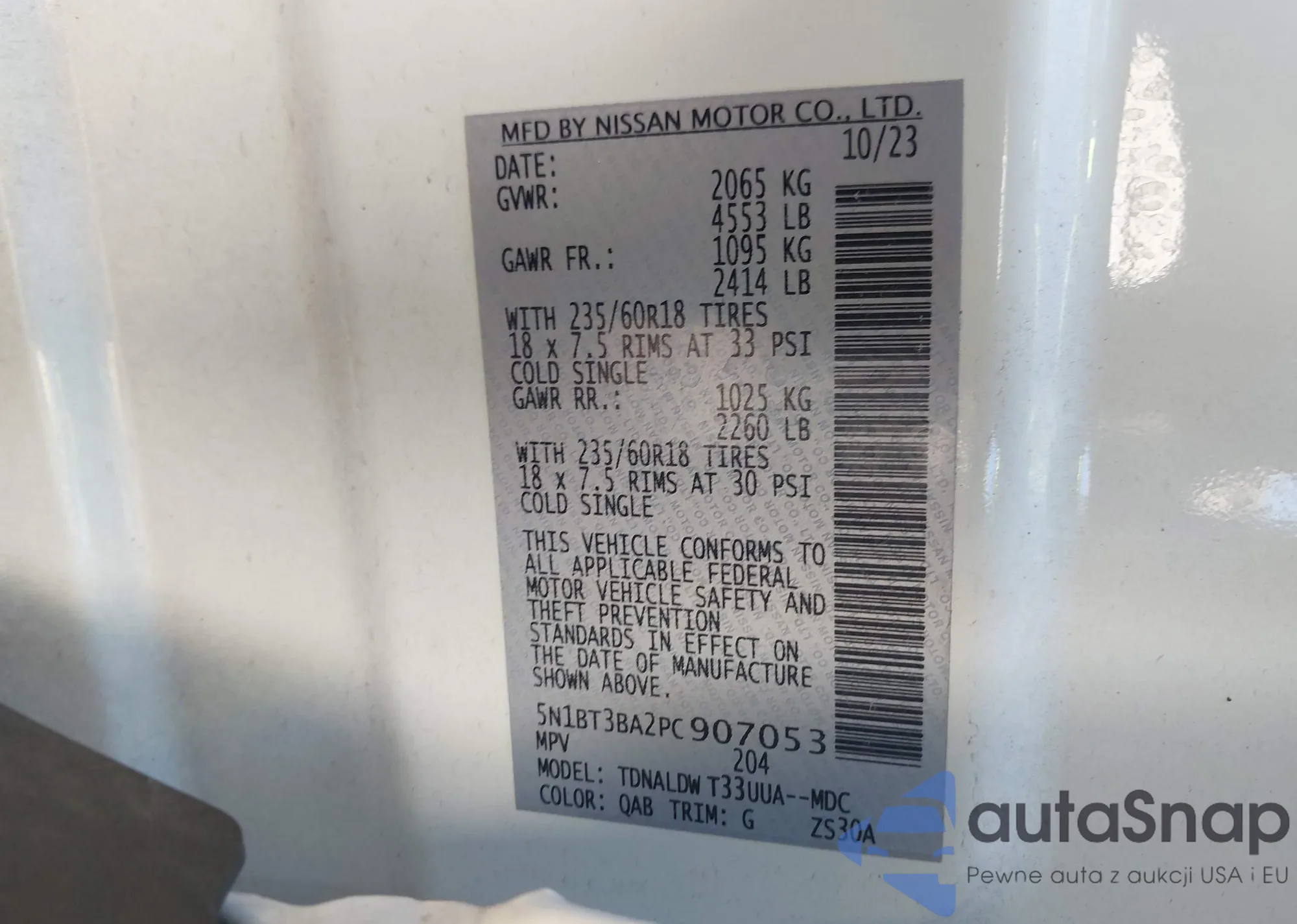 • VIN 5N1BT3BA2PC907053