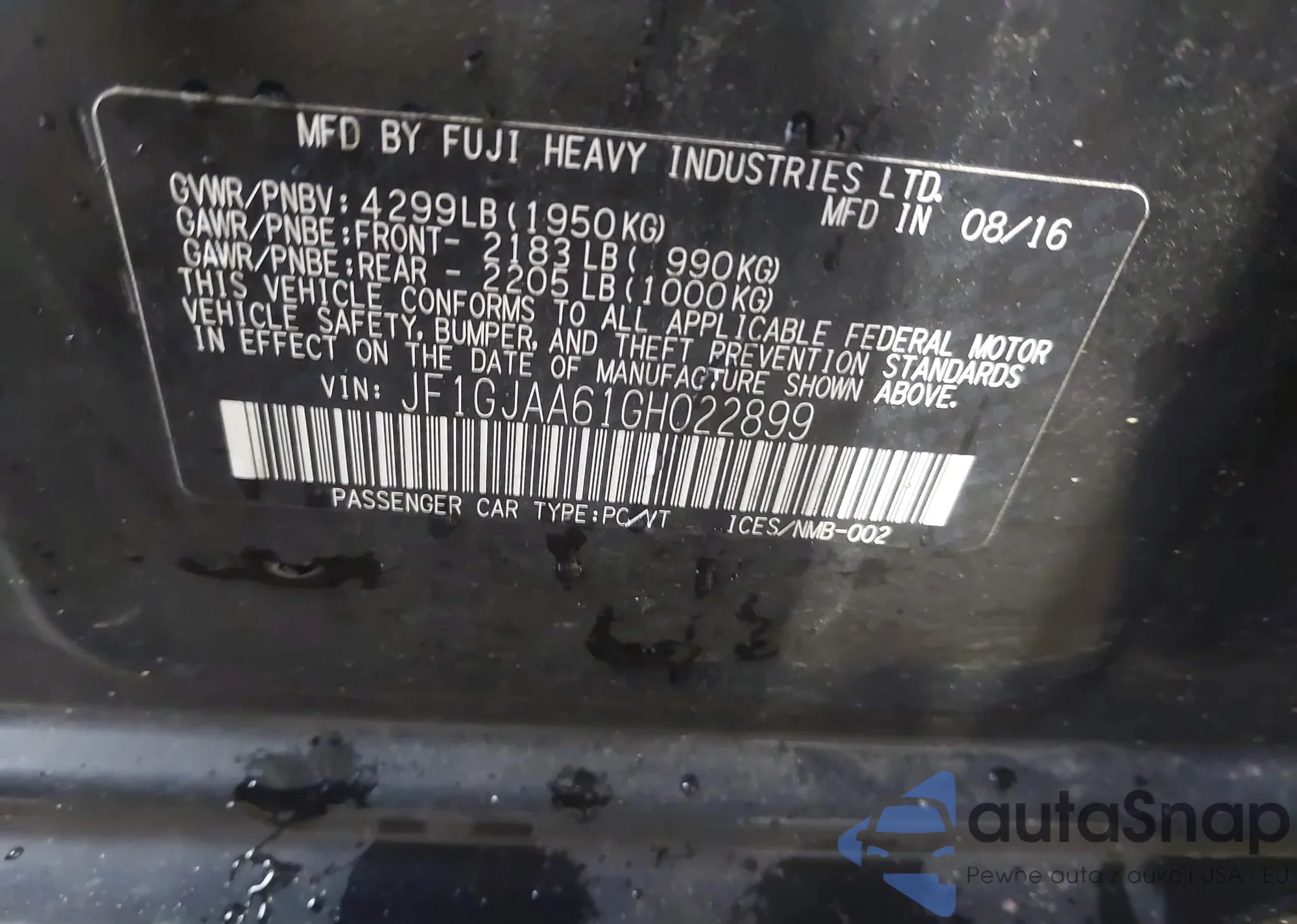 • VIN JF1GJAA61GH022899