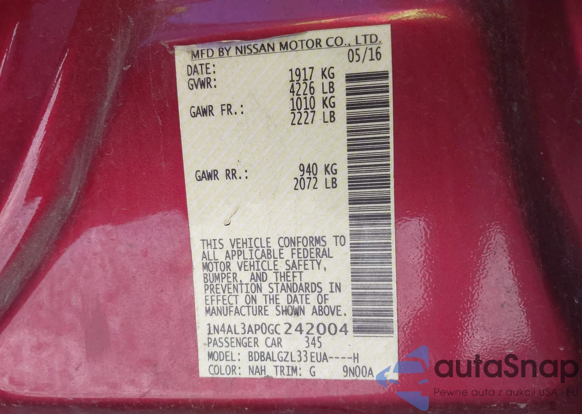 • VIN 1N4AL3AP0GC242004