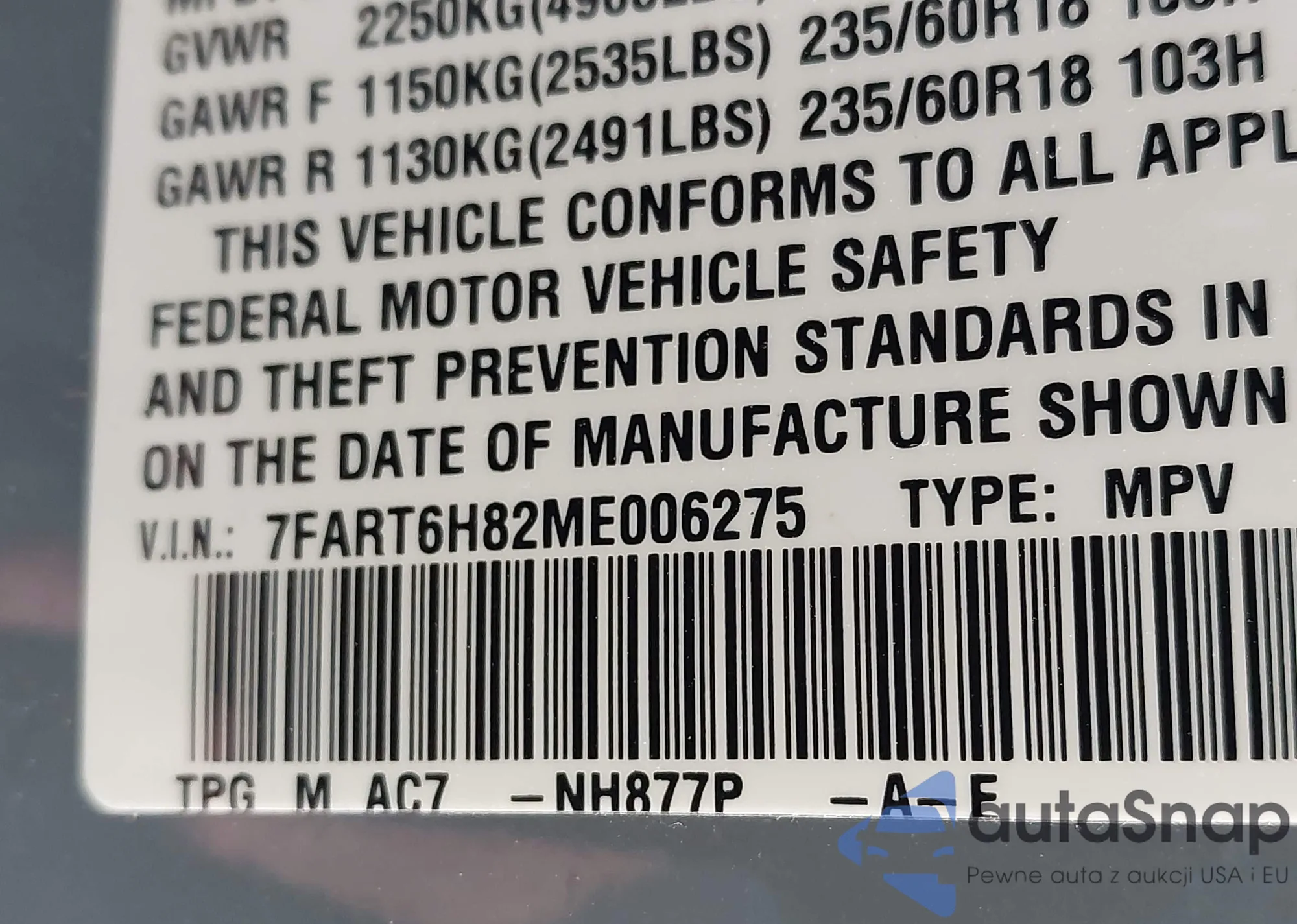 • VIN 7FART6H82ME006275