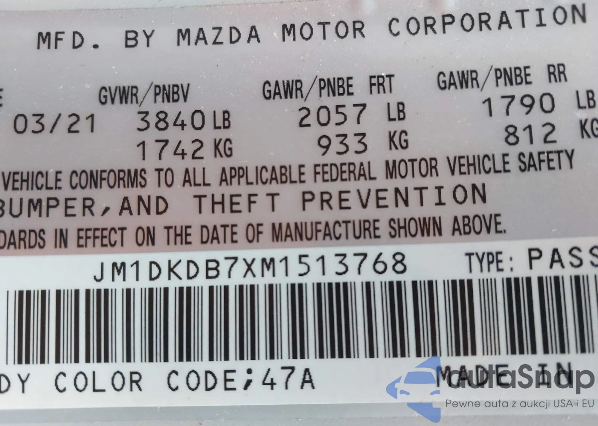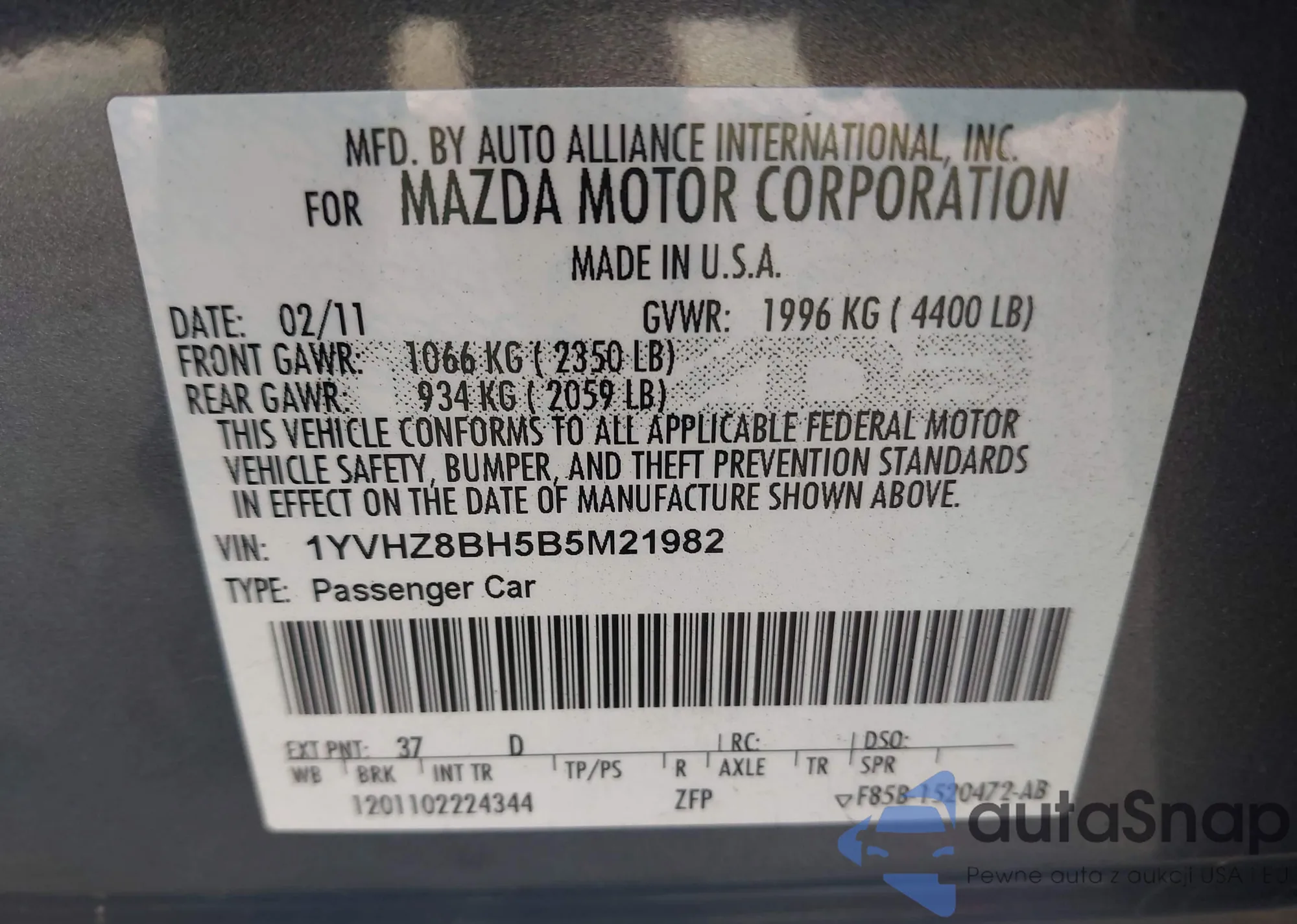 LOT: 43641325 VIN: 1YVHZ8BH585M21982