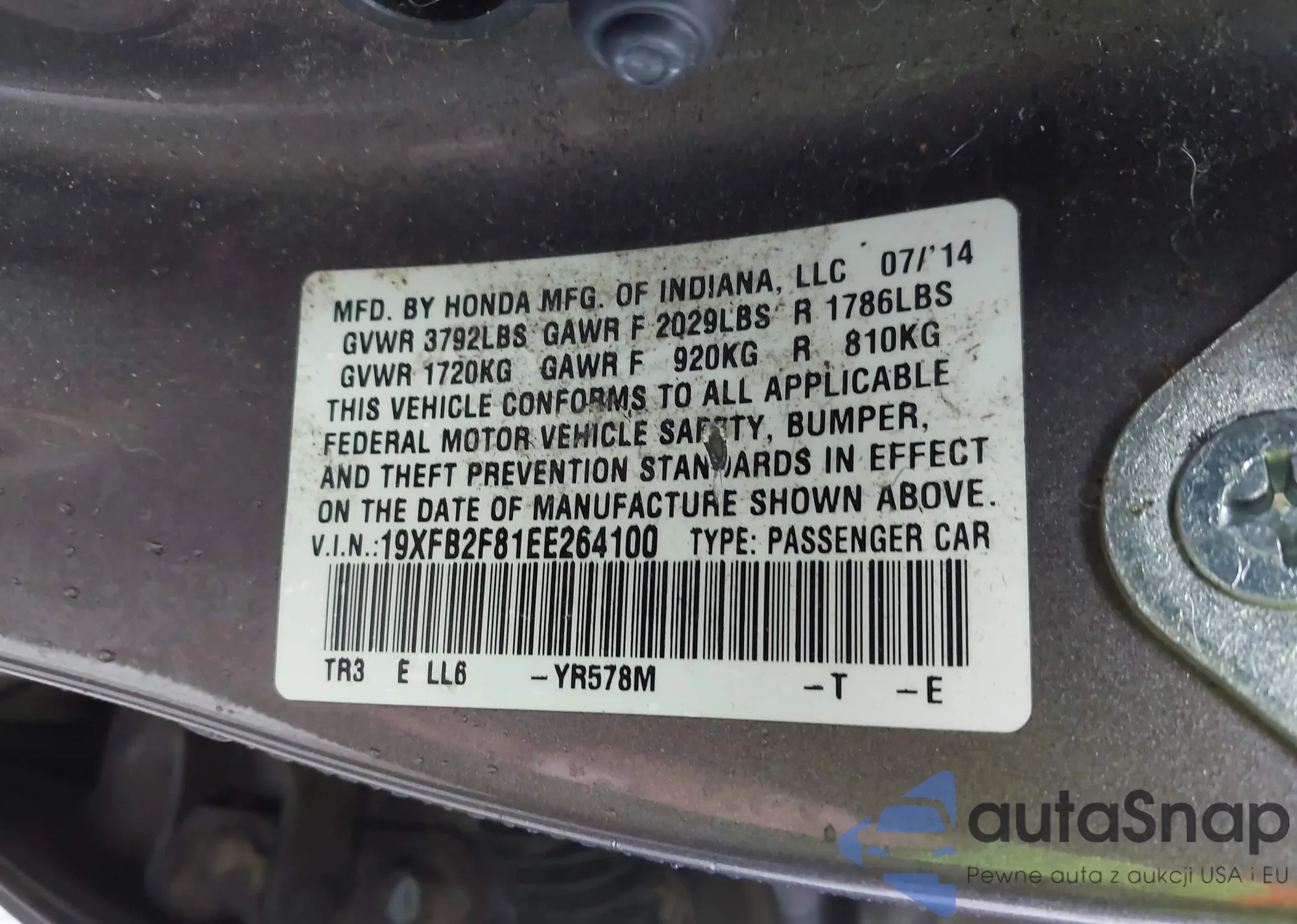 LOT: 43476829 VIN: 19XFB2F83CE026925