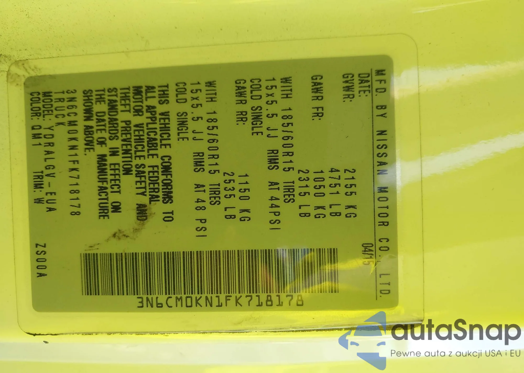 LOT: 43475492 VIN: 3N6CM0KN1FK718178