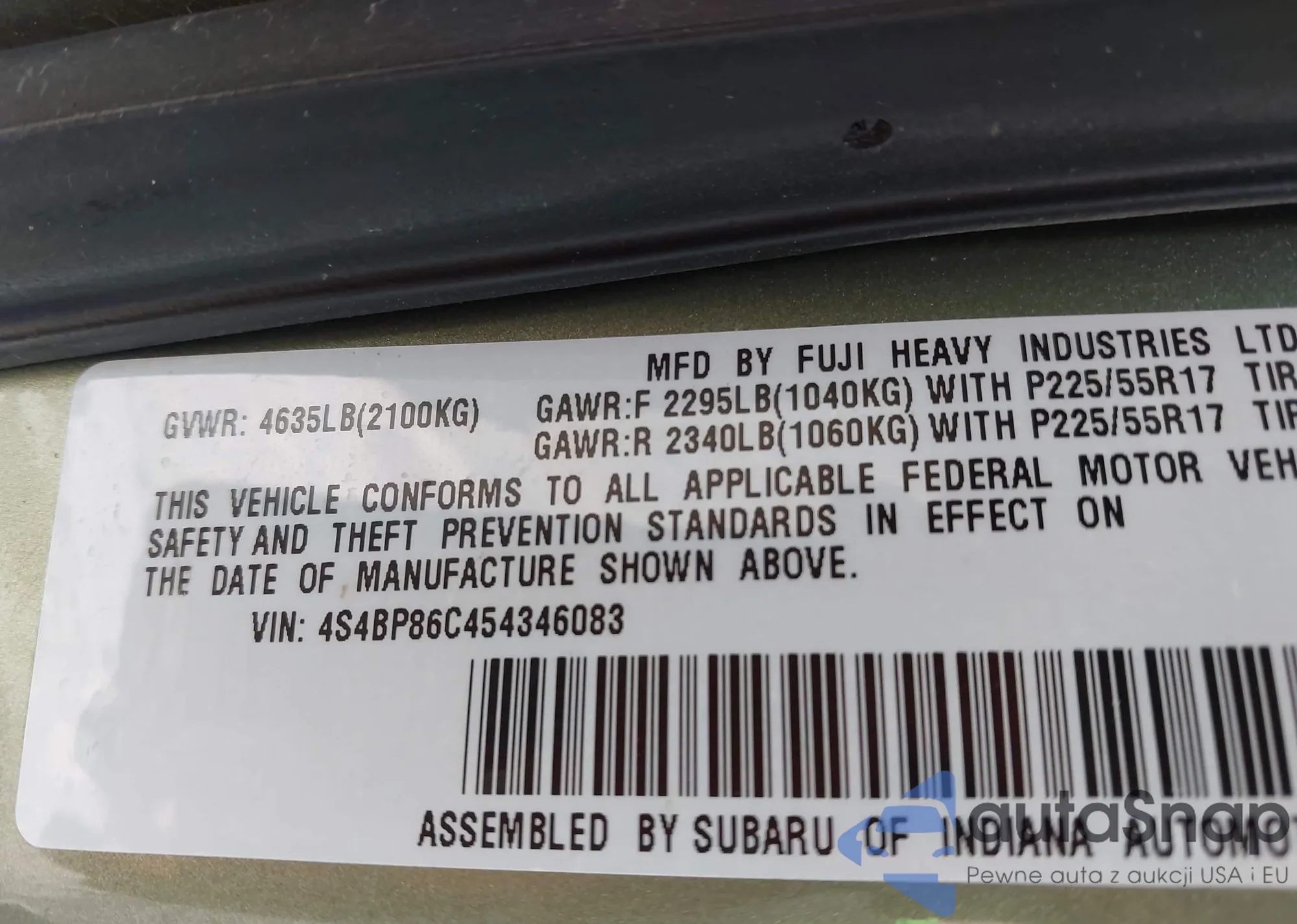 • VIN 4S4BP86C454346083