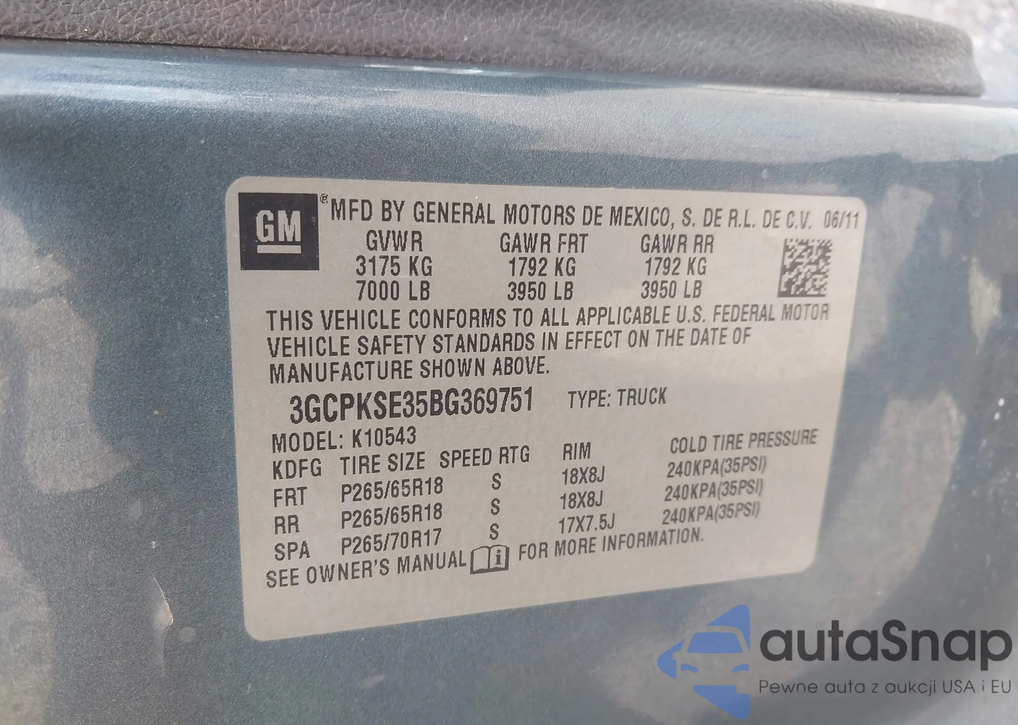 • VIN 3GCPKSE35BG369751