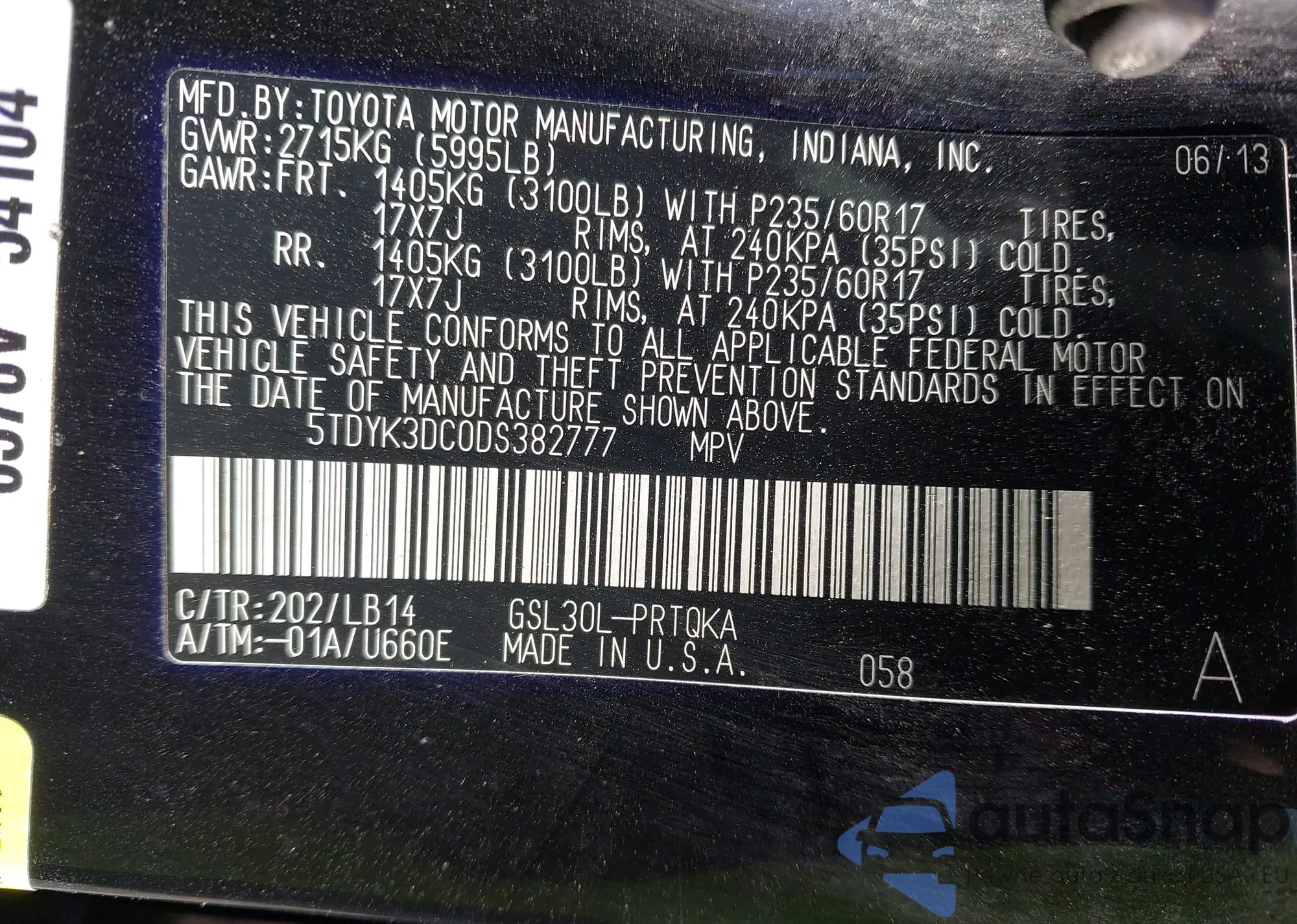 LOT: 43445844 VIN: 1GCCS136758108850